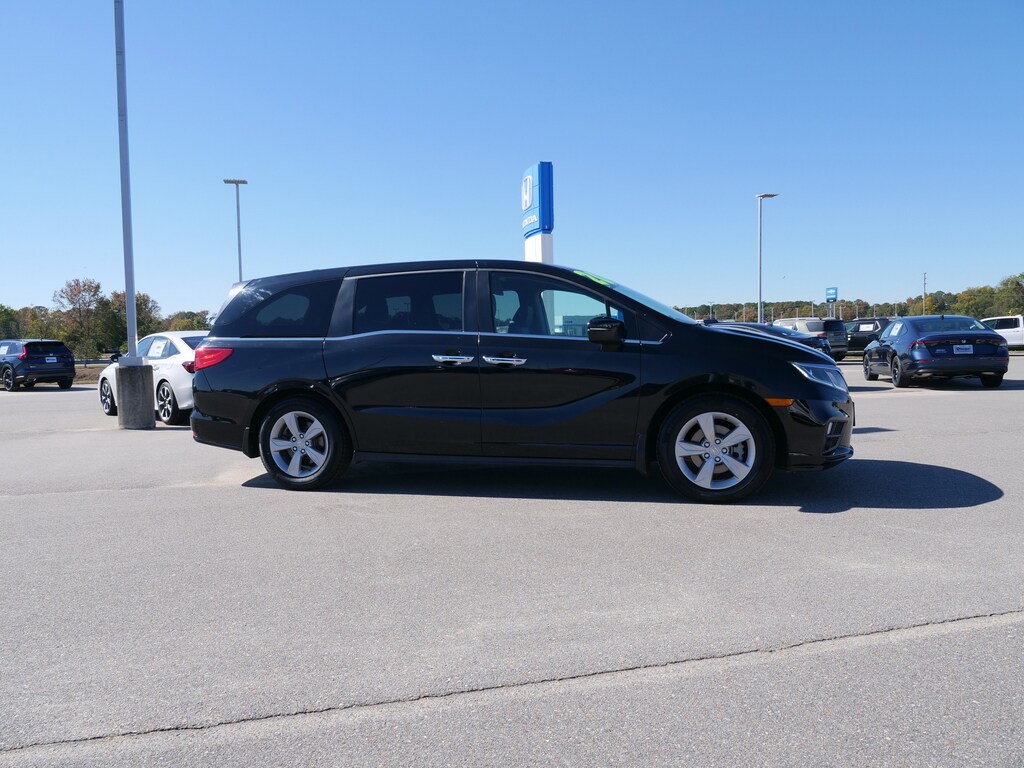 Recent Arrival! Certified. Crystal Black Pearl 2020 Honda Odyssey EX-L w/Navigation and Rear Entertainment System 3.5L V6 SOHC i-VTEC 24V 10-Speed Automatic FWD HondaTrue Certified Certified, 3.61 Axle Ratio, 3rd row seats: split-bench, 4-Wheel Disc Brakes, 7 Speakers, A/V remote: CabinControl, ABS brakes, Air Conditioning, Alloy wheels, AM/FM radio: SiriusXM, Anti-whiplash front head restraints, Apple CarPlay/Android Auto, Auto High-beam Headlights, Auto-dimming Rear-View mirror, Automatic temperature control, Blind Spot Information (BSI) System warning, Brake assist, Bumpers: body-color, CD player, Compass, Delay-off headlights, Driver door bin, Driver vanity mirror, Driver's Seat Mounted Armrest, Dual front impact airbags, Dual front side impact airbags, DVD-Audio, Electronic Stability Control, Exterior Parking Camera Rear, Forward collision: Collision Mitigation Braking System (CMBS) + FCW mitigation, Four wheel independent suspension, Front anti-roll bar, Front Bucket Seats, Front dual zone A/C, Front fog lights, Front reading lights, Fully automatic headlights, Garage door transmitter: HomeLink, Headphones, Heated door mirrors, Heated Front Bucket Seats, Heated front seats, Illuminated entry, Knee airbag, Lane departure: Lane Keeping Assist System (LKAS) active, Leather Seat Trim, Leather steering wheel, Low tire pressure warning, Memory seat, Navigation system: Honda Satellite-Linked Navigation System, Occupant sensing airbag, Outside temperature display, Overhead airbag, Overhead console, Panic alarm, Passenger door bin, Passenger seat mounted armrest, Passenger vanity mirror, Power door mirrors, Power driver seat, Power Liftgate, Power moonroof, Power passenger seat, Power steering, Power windows, Radio data system, Radio: 160-Watt AM/FM/HD/SiriusXM Audio System, Rear air conditioning, Rear anti-roll bar, Rear audio controls, Rear reading lights, Rear seat center armrest, Rear window defroster, Rear window wiper, Reclining 3rd row seat, Remote keyless entry, Security system, Speed control, Speed-sensing steering, Speed-Sensitive Wipers, Split folding rear seat, Spoiler, Steering wheel mounted audio controls, Tachometer, Telescoping steering wheel, Tilt steering wheel, Traction control, Trip computer, Turn signal indicator mirrors, Variably intermittent wipers, and Wheels: 18 Silver-Painted Alloy.