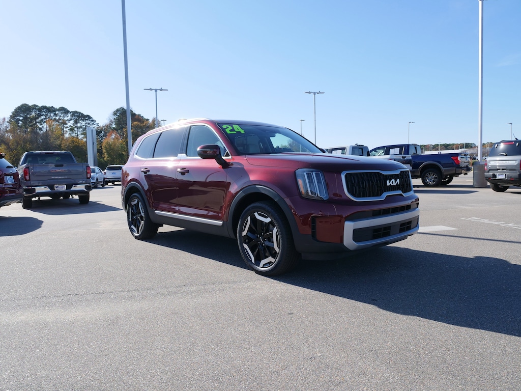 Certified. Dawning Red 2024 Kia Telluride EX AWD 8-Speed Automatic 3.8L V6 DOHC EX Captain's Chair Package (2nd Row Captain Chairs), Kia Certified Pre-Owned Certified, 3.648 Axle Ratio, 3rd row seats: split-bench, 4-Wheel Disc Brakes, 6 Speakers, ABS brakes, Air Conditioning, Alloy wheels, AM/FM radio: SiriusXM, Apple CarPlay & Android Auto, Auto High-beam Headlights, Auto-dimming Rear-View mirror, Automatic temperature control, Brake assist, Bumpers: body-color, Cargo Cover, Carpet Floor Mats, Compass, Delay-off headlights, Driver door bin, Driver vanity mirror, Dual front impact airbags, Dual front side impact airbags, Electronic Stability Control, Emergency communication system: 911 Connect, Exterior Parking Camera Rear, Folding Cargo Tray, Four wheel independent suspension, Front anti-roll bar, Front Bucket Seats, Front Center Armrest, Front dual zone A/C, Front reading lights, Fully automatic headlights, Heated & Ventilated Front Bucket Seats, Heated door mirrors, Heated front seats, Heated steering wheel, Illuminated entry, Knee airbag, Leather Seat Trim, Leather Shift Knob, Leather steering wheel, Low tire pressure warning, Navigation System, Occupant sensing airbag, Outside temperature display, Overhead airbag, Overhead console, Panic alarm, Passenger door bin, Passenger vanity mirror, Power door mirrors, Power driver seat, Power Liftgate, Power moonroof, Power passenger seat, Power steering, Power windows, Radio data system, Radio: AM/FM Display Audio System, Rear air conditioning, Rear anti-roll bar, Rear audio controls, Rear reading lights, Rear seat center armrest, Rear side impact airbag, Rear window defroster, Rear window wiper, Reclining 3rd row seat, Remote keyless entry, Roof rack: rails only, Security system, Smart Key w/ Push Button and Remote Start, Speed control, Speed-sensing steering, Split folding rear seat, Spoiler, Steering wheel mounted audio controls, Tachometer, Telescoping steering wheel, Tilt steering wheel, Traction control, Trip computer, Turn signal indicator mirrors, Variably intermittent wipers, Ventilated front seats, and Wheels: 20" x 7.5" Black Finish.