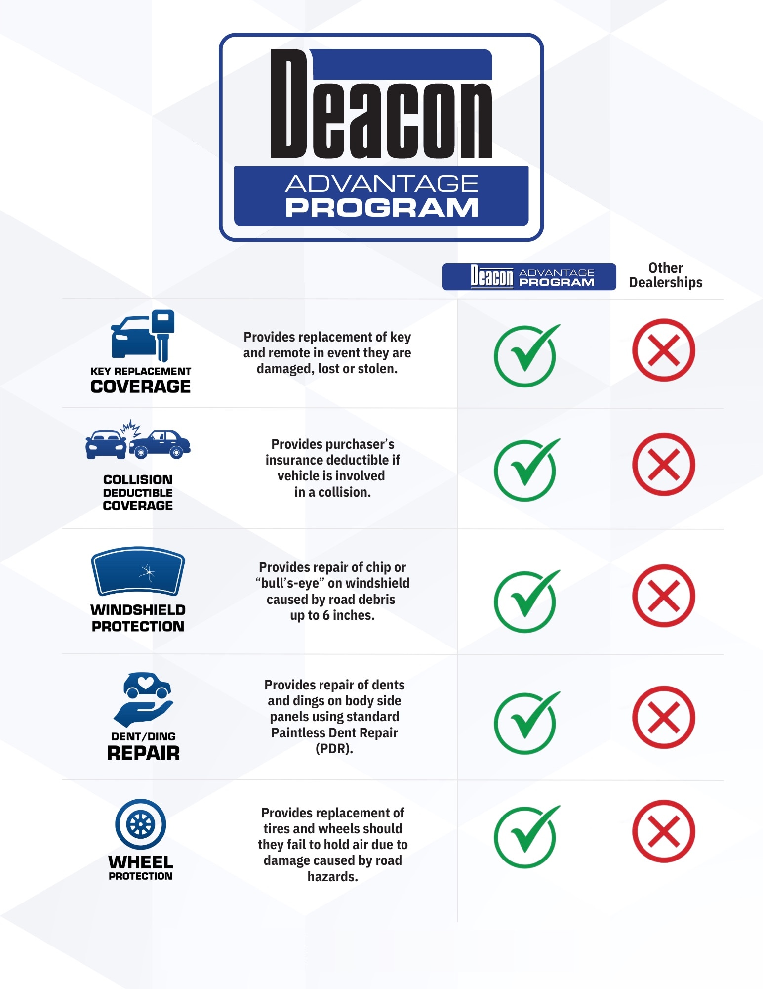We're not your average dealership. Deacon Jones Hyundai believes in going above and beyond to serve our customers. That's why we're proud to offer the Deacon Advantage Program. The Deacon Advantage includes tons of service perks that cover you for years after you drive off the lot. These perks include: