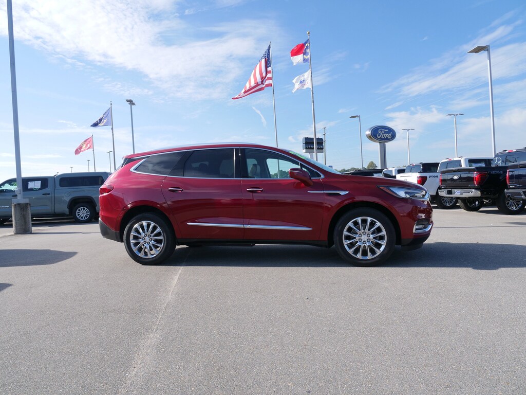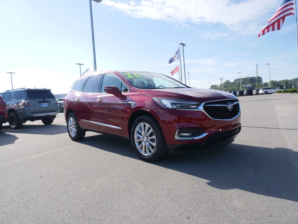 Red Quartz Tintcoat 2020 Buick Enclave Essence FWD 3.6L V6 SIDI VVT 9-Speed Automatic Buick Interior Protection Package (LPO) (3rd Row All-Weather Floor Mats, All-Weather Cargo Mat (LPO), and All-Weather Floor Mats), Preferred Equipment Group 1SL, FWD, 18 Painted Aluminum Wheels, 20 Polished Aluminum Wheels, 3.49 Axle Ratio, 3rd row seats: split-bench, 4-Wheel Disc Brakes, 6 Speakers, 6-Speaker Audio System Feature, 7-Passenger Seating, ABS brakes, Air Conditioning, Alloy wheels, AM/FM radio: SiriusXM with 360L, Apple CarPlay/Android Auto, Auto High-beam Headlights, Auto-dimming door mirrors, Auto-dimming Rear-View mirror, Automatic temperature control, Brake assist, Bumpers: body-color, Compass, Delay-off headlights, Driver door bin, Driver vanity mirror, Dual front impact airbags, Dual front side impact airbags, Electronic Stability Control, Emergency communication system: OnStar and Buick connected services capable, Four wheel independent suspension, Front anti-roll bar, Front Bucket Seats, Front Center Armrest, Front dual zone A/C, Front Power Sliding Moonroof, Front reading lights, Fully automatic headlights, Garage door transmitter, Heated door mirrors, Heated Driver & Front Passenger Seats, Heated front seats, Illuminated entry, Leather steering wheel, Low tire pressure warning, Occupant sensing airbag, Outside temperature display, Overhead airbag, Overhead console, Panic alarm, Passenger door bin, Passenger vanity mirror, Perforated Leather-Appointed Seat Trim, Power door mirrors, Power Driver Lumbar Control Seat Adjuster, Power driver seat, Power Liftgate, Power Passenger Lumbar Control Seat Adjuster, Power passenger seat, Power steering, Power windows, Premium audio system: Buick Infotainment System, Radio data system, Radio: Buick Infotainment System AM/FM Stereo, Rear air conditioning, Rear anti-roll bar, Rear Parking Sensors, Rear reading lights, Rear window defroster, Rear window wiper, Remote keyless entry, Roof rack: rails only, Security system, SiriusXM w/360L, Speed control, Speed-sensing steering, Spoiler, Steering wheel mounted audio controls, Tachometer, Telescoping steering wheel, Tilt steering wheel, Traction control, Trip computer, Turn signal indicator mirrors, Variably intermittent wipers, and Voltmeter.