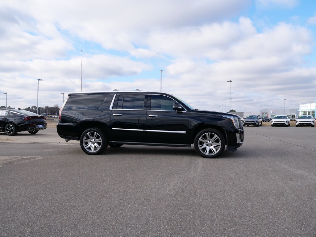 Black Raven 2018 Cadillac Escalade ESV Premium 4WD 10-Speed Automatic with Overdrive 6.2L Variable Valve Timing V8 SIDI Driver Assist Package (Adaptive Full-Speed Range Cruise Control, Automatic Safety Belt Tightening, Electronic Powered Parking Brake, and Forward/Reverse Automatic Braking), Interior Protection Package (LPO) (All-Weather 1st, 2nd & 3rd Row Floor Mats (LPO) and All-Weather Cargo Mat (LPO)), Preferred Equipment Group 1SC (3rd Row DVD Screen, Forward Collision Alert, Front Cornering Lamps, Illuminated Door Handles, IntelliBeam Automatic High Beam On/Off, Lane Change Alert w/Side Blind Zone Alert, Lane Keep Assist w/Lane Departure Warning, Power Configurable Second Row Bucket Seats, Power Tilt-Sliding Sunroof w/Express-Open/Close, Rear Camera Mirror, Rear Camera Washer, Rear Cross-Traffic Alert, Rear Seat Entertainment System, Reconfigurable 4-Color Head-Up Display, Safety Alert Seat, and VAC Power 17" Disc Brakes w/Adaptive Cruise Control), Theft-Deterrent Package (Inclination Sensor, Theft-Deterrent Alarm System, and Vehicle Interior Movement Sensor), 4WD, 16 Speakers, 3.23 Axle Ratio, 3rd row seats: split-bench, 4-Wheel Disc Brakes, A/V remote, ABS brakes, Adaptive suspension, Adjustable pedals, Air Conditioning, Alloy wheels, AM/FM radio: SiriusXM, Apple CarPlay/Android Auto, Auto High-beam Headlights, Auto tilt-away steering wheel, Auto-dimming door mirrors, Auto-leveling suspension, Automatic temperature control, Black Front License Plate Bracket, Bodyside moldings, Bose Centerpoint 16 Speaker Surround Sound System, Brake assist, Bumpers: body-color, CD player, Compass, Delay-off headlights, Driver door bin, Driver vanity mirror, Dual front impact airbags, Dual front side impact airbags, DVD-Audio, Electronic Stability Control, Emergency communication system: OnStar and Cadillac connected services capable, Exterior Parking Camera Rear, Front anti-roll bar, Front Bucket Seats, Front Center Armrest w/Storage, Front dual zone A/C, Front Passenger 12-Way Power Seat Adjuster, Front reading lights, Front wheel independent suspension, Fully automatic headlights, Garage door transmitter, HD Radio, Headphones, Heads-Up Display, Heated & Cooled Front Seats, Heated door mirrors, Heated front seats, Heated rear seats, Heated steering wheel, Illuminated entry, Leather Seating Surfaces, Leather Shift Knob, Leather steering wheel, Low tire pressure warning, Magnetic Ride Control Suspension, Memory seat, Navigation System, Occupant sensing airbag, Outside temperature display, Overhead airbag, Overhead console, Panic alarm, Passenger door bin, Passenger vanity mirror, Pedal memory, Polished Exhaust Tip, Power door mirrors, Power driver seat, Power Liftgate, Power moonroof, Power passenger seat, Power steering, Power windows, Power-Retractable Assist Steps, Radio data system, Radio: AM/FM Cadillac User Experience w/Nav, Rain sensing wipers, Rear air conditioning, Rear anti-roll bar, Rear audio controls, Rear reading lights, Rear window defroster, Rear window wiper, Remote keyless entry, Roof rack: rails only, Security system, SiriusXM NavTraffic, SiriusXM Satellite Radio, Speed control, Split folding rear seat, Spoiler, Steering wheel memory, Steering wheel mounted audio controls, Tachometer, Telescoping steering wheel, Tilt steering wheel, Traction control, Trip computer, Turn signal indicator mirrors, Variably intermittent wipers, Ventilated front seats, Wheel Locks, Wheels: 22" x 9" 7-Spoke Aluminum w/Premium Paint, and Wheels: 22" x 9" Dual 7-Spoke Ultra Bright Aluminum.