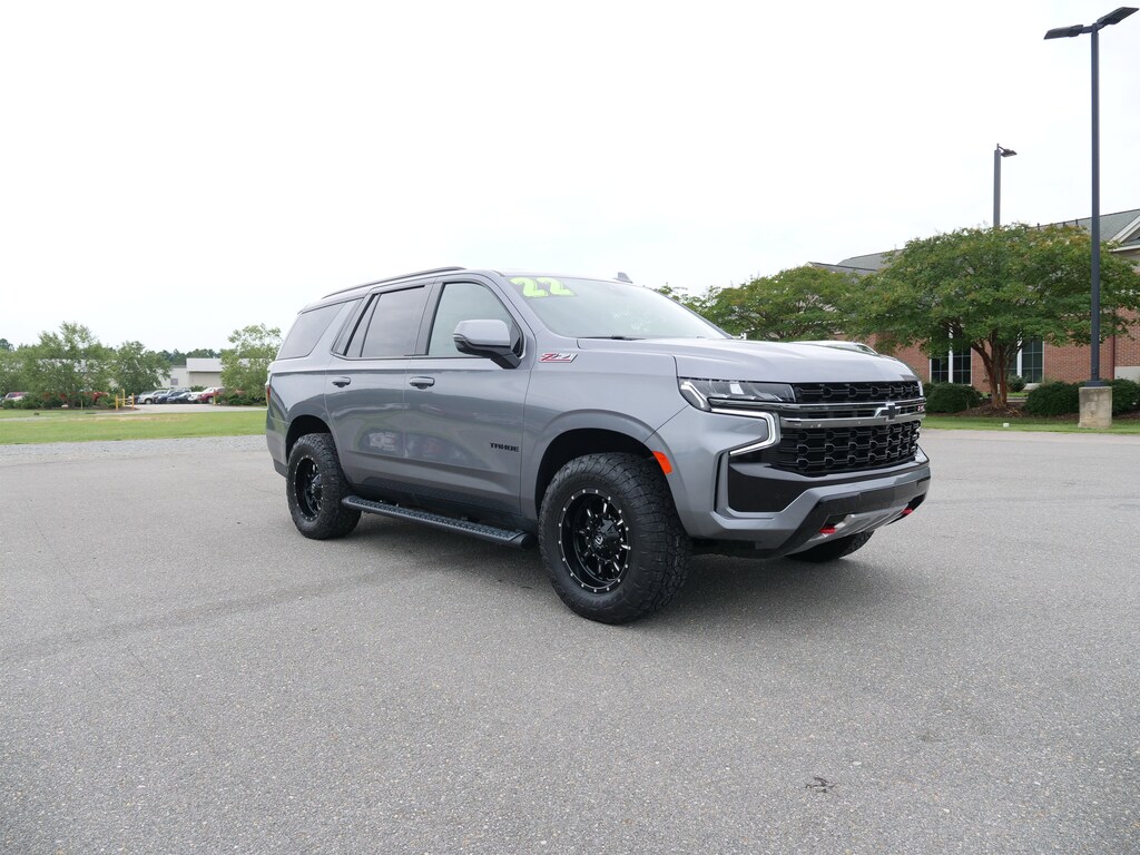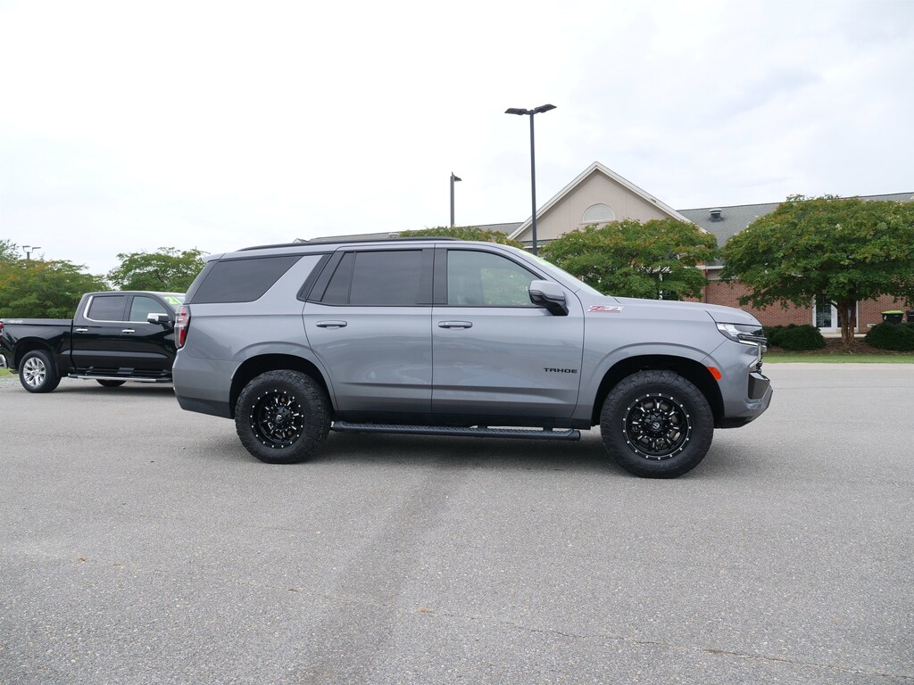 Satin Steel Metallic 2022 Chevrolet Tahoe Z71 EcoTec3 5.3L V8 10-Speed Automatic with Overdrive 4WD Advanced Trailering Package (Hitch Guidance w/Hitch View, Integrated Trailer Brake Controller, and Smart Trailer Integration Indicator), Driver Alert Package (Lane Change Alert w/Side Blind Zone Alert and Rear Cross Traffic Alert), License Plate Front Mounting Package, Luxury Package (2nd Row Pwr Release 60/40 Split-Folding Bench Seat, 3rd Row 60/40 Power-Folding Split-Bench Seat, HD Surround Vision, Heated 2nd Row Outboard Seats, Heated Steering Wheel, Memory Settings, Outside Heated Power-Adjustable Mirrors, Power Tilt & Telescopic Steering Column, and Rear Pedestrian Alert), Max Trailering Package (Extra Capacity Cooling System), Preferred Equipment Group 2Z7 (1st & 2nd Row Color-Keyed Carpeted Floor Mats, 2-Speed Active Electronic AutoTrac Transfer Case, Auto-Dimming Inside Rear-View Mirror, Automatic Stop/Start, Black Tubular Assist Steps, Bose 9-Speaker Stereo Audio System Feature, Bright Front & Rear Door Sill Plates, Color-Keyed Carpeting Floor Covering, Driver & Front Outboard Passenger Airbags, Enhanced Driver Information Center, Floor Console w/Storage Area, Front High-Approach Angle Fascia, Hands-Free Rear Power Programmable Liftgate, Hill Descent Control, Infotainment Display, Leather-Wrapped Steering Wheel, LED Daytime Running Lamps, Memory Settings for Driver, Red Horizontal-Mounted Recovery Hooks, Remote Start, SiriusXM Radio w/360L, Start/Stop System Disable Button, Universal Home Remote, and Wireless Charging), 4WD, Black Leather, 10-Way Power Driver & Passenger Seat Adjusters, 3.23 Rear Axle Ratio, 3rd row seats: split-bench, 4-Wheel Disc Brakes, 9 Speakers, ABS brakes, Air Conditioning, Alloy wheels, AM/FM radio: SiriusXM with 360L, Apple CarPlay/Android Auto, Auto High-beam Headlights, Auto-dimming Rear-View mirror, Automatic temperature control, Brake assist, Bumpers: body-color, Compass, Delay-off headlights, Driver door bin, Driver vanity mirror, Dual front impact airbags, Dual front side impact airbags, Dual-Pane Power Panoramic Sunroof, Electronic Stability Control, Emergency communication system: OnStar and Chevrolet connected services capable, Four wheel independent suspension, Front anti-roll bar, Front Bucket Seats, Front Center Armrest, Front dual zone A/C, Front High-Back Reclining Bucket Seats, Front reading lights, Fully automatic headlights, Garage door transmitter, Heated door mirrors, Heated Driver & Front Passenger Seats, Heated front seats, Illuminated entry, Leather steering wheel, Leather-Appointed Seat Trim, Low tire pressure warning, Memory seat, Navigation System, Not Equipped w/Heated Steering Wheel (DISC), Not Equipped w/Steering Column Lock, Occupant sensing airbag, Outside temperature display, Overhead airbag, Overhead console, Panic alarm, Passenger door bin, Passenger vanity mirror, Power door mirrors, Power driver seat, Power Liftgate, Power passenger seat, Power Release 2nd Row Bucket Seats, Power steering, Power windows, Premium audio system: Chevrolet Infotainment System 3, Premium Smooth Ride Suspension, Radio: Chevrolet Infotainment 3 Premium System, Rain sensing wipers, Rear air conditioning, Rear anti-roll bar, Rear reading lights, Rear seat center armrest, Rear window defroster, Rear window wiper, Remote keyless entry, Roof rack: rails only, Security system, Speed control, Speed-sensing steering, Split folding rear seat, Spoiler, Steering wheel mounted audio controls, Tachometer, Telescoping steering wheel, Tilt steering wheel, Traction control, Trip computer, Variably intermittent wipers, Voltmeter, and Wheels: 20 x 9 Machined Aluminum.