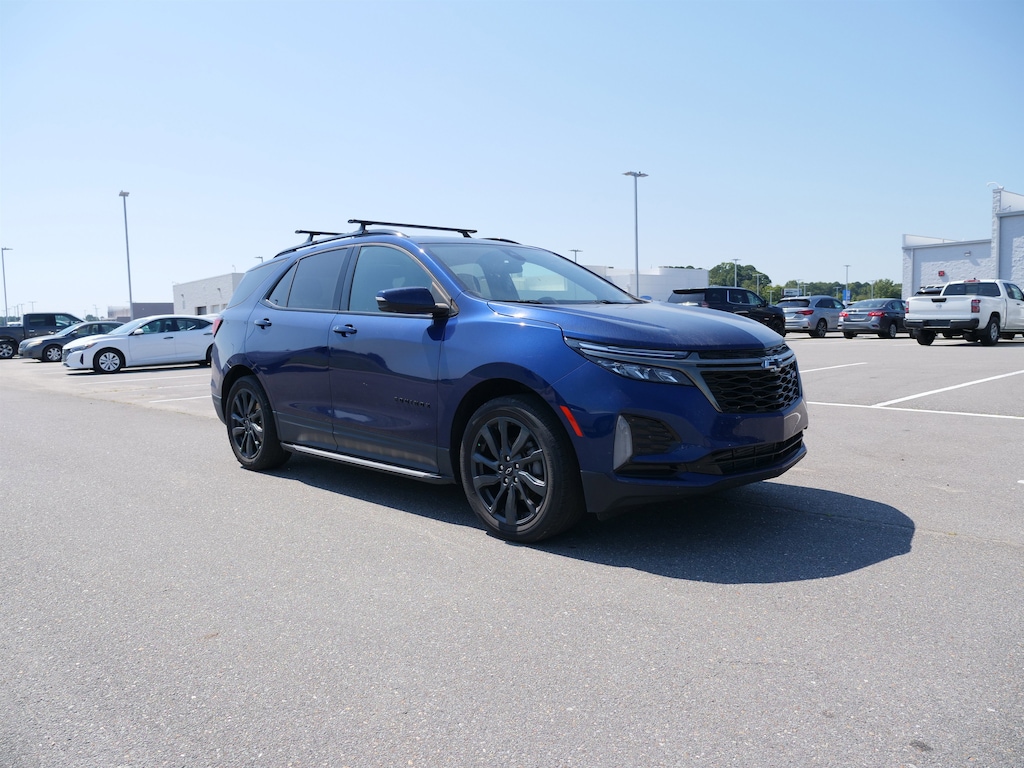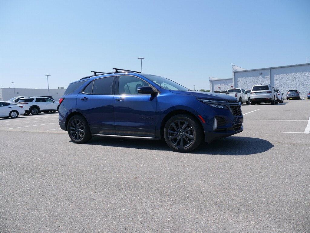 Blue Glow Metallic 2023 Chevrolet Equinox RS FWD 1.5L DOHC 6-Speed Automatic Electronic with Overdrive Advanced Safety Package (Adaptive Cruise Control, HD Surround Vision, and Outside Heated Power-Adjustable Mirrors), Hit The Road Package (Molded Assist Steps and Roof Rack Cross Rails (LPO)), Infotainment Package (120-Volt Power Outlet, 2 Rear USB Charging-Only Ports, 2 USB Data Ports, 2 USB Data Ports w/SD Card Reader, Bluetooth® For Phone, Heated Steering Wheel, Radio: Chevrolet Infotainment 3 Plus System, and SiriusXM Radio), Preferred Equipment Group 1RS, RS Leather Package (Bose Premium 7-Speaker Audio System Feature, Driver Seatback Map Pocket, and Perforated Leather-Appointed Seat Trim), Safety & Infotainment Package, 19 Aluminum Wheels, 2 USB Ports & Auxiliary Input Jack, 2-Way Power Driver Lumbar Control Seat Adjuster, 3.50 Final Drive Axle Ratio, 4-Wheel Disc Brakes, 6 Speakers, 6-Speaker Audio System Feature, ABS brakes, Air Conditioning, Alloy wheels, AM/FM radio: SiriusXM, Auto High-beam Headlights, Automatic temperature control, Brake assist, Bumpers: body-color, Compass, Delay-off headlights, Driver 8-Way Power Seat Adjuster, Driver door bin, Driver vanity mirror, Dual front impact airbags, Dual front side impact airbags, Electronic Stability Control, Emergency communication system: OnStar and Chevrolet connected services capable, Four wheel independent suspension, Front anti-roll bar, Front Bucket Seats, Front Center Armrest, Front dual zone A/C, Front Passenger 4-Way Manual Seat Adjuster, Front reading lights, Fully automatic headlights, Heated door mirrors, Heated Driver & Front Passenger Seats, Heated front seats, Illuminated entry, Low tire pressure warning, Occupant sensing airbag, Outside temperature display, Overhead airbag, Overhead console, Panic alarm, Passenger door bin, Passenger vanity mirror, Power door mirrors, Power driver seat, Power Liftgate, Power steering, Power Sunroof, Power windows, Premium audio system: Chevrolet Infotainment 3, Premium Cloth Seat Trim, Radio data system, Radio: Chevrolet Infotainment 3 Plus System w/Navi, Radio: Chevrolet Infotainment 3 System w/AM/FM, Rear anti-roll bar, Rear reading lights, Rear seat center armrest, Rear window defroster, Rear window wiper, Remote keyless entry, Roof rack: rails only, Security system, Speed control, Speed-sensing steering, Split folding rear seat, Spoiler, Steering wheel mounted audio controls, Tachometer, Telescoping steering wheel, Tilt steering wheel, Traction control, Trip computer, Variably intermittent wipers, and Wireless Apple CarPlay/Wireless Android Auto.