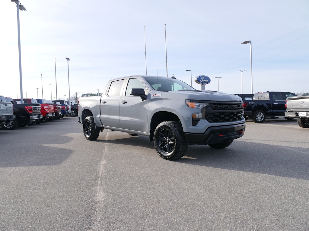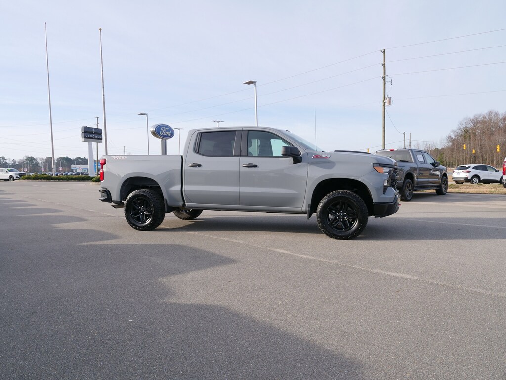 Slate Gray Metallic 2024 Chevrolet Silverado 1500 Custom Trail Boss 4WD 2.7L I4 Turbocharged DOHC 16V LEV3-SULEV30 310hp 8-Speed Automatic Custom Convenience Package (Electric Rear-Window Defogger, EZ Lift Power Lock & Release Tailgate, LED Cargo Area Lighting, Remote Vehicle Starter System, and Theft Deterrent System (Unauthorized Entry)), Preferred Equipment Group 2CX (10-Way Power Driver Seat w/Lumbar, 120-Volt Bed Mounted Power Outlet, 120-Volt Interior Power Outlet, 3.5 Monochromatic Display Driver Info Center, Auto-Locking Rear Differential, Bluetooth® For Phone, Chevrolet Connected Access Capable, Color-Keyed Carpeting Floor Covering, Deep-Tinted Glass, Dual Rear USB Ports (Charge Only), Electrical Steering Column Lock, Electronic Cruise Control, Front Rubberized Vinyl Floor Mats, HD Rear Vision Camera, Manual Tilt Wheel Steering Column, OnStar & Chevrolet Connected Services Capable, Performance Red Recovery Hooks, Power Front Windows w/Driver Express Up/Down, Power Front Windows w/Passenger Express Down, Power Rear Windows w/Express Down, Rear 60/40 Folding Bench Seat (Folds Up), Rear Rubberized-Vinyl Floor Mats, Remote Keyless Entry, SiriusXM Radio, Standard Tailgate, and Wi-Fi Hot Spot Capable), Suspension Package (Heavy-Duty Air Filter and Hill Descent Control), Trailering Package (Hitch Guidance), 8-Speed Automatic, 4WD, Black Cloth, 220 Amp Alternator, 3.42 Rear Axle Ratio, 4-Wheel Disc Brakes, 40/20/40 Front Split-Bench Seat, 6 Speakers, 6-Speaker Audio System, ABS brakes, Air Conditioning, Alloy wheels, AM/FM radio: SiriusXM, Auto High-beam Headlights, Automatic Emergency Braking, Brake assist, Cloth Seat Trim, Compass, Delay-off headlights, Driver door bin, Driver vanity mirror, Dual front impact airbags, Dual front side impact airbags, Electronic Stability Control, Following Distance Indicator, Forward Collision Alert, Front anti-roll bar, Front Center Armrest w/Storage, Front Pedestrian Braking, Front reading lights, Front wheel independent suspension, Fully automatic headlights, Heated door mirrors, Illuminated entry, IntelliBeam Automatic High Beam On/Off, Lane Keep Assist w/Lane Departure Warning, Low tire pressure warning, Occupant sensing airbag, Outside temperature display, Overhead airbag, Overhead console, Panic alarm, Passenger door bin, Passenger vanity mirror, Power door mirrors, Power driver seat, Power steering, Power windows, Premium audio system: Chevrolet Infotainment 3, Radio data system, Radio: Chevrolet Infotainment 3 System, Rear reading lights, Rear step bumper, Rear window defroster, Remote keyless entry, Security system, Single Outlet Exhaust, Speed control, Speed-sensing steering, Split folding rear seat, Tachometer, Tilt steering wheel, Traction control, Trip computer, Variably intermittent wipers, Voltmeter, and Wheels: 18 x 8.5 Black Painted Aluminum.