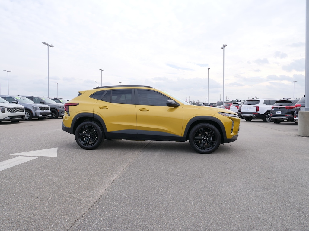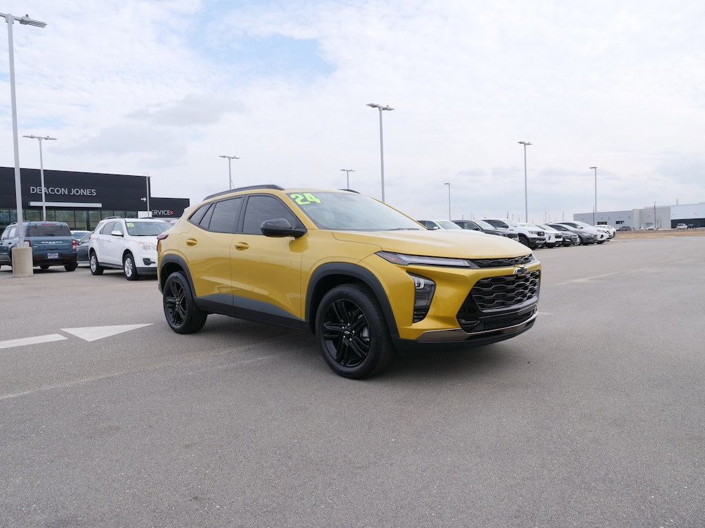 Nitro Yellow Metallic 2024 Chevrolet Trax ACTIV FWD 6-Speed Automatic 1.2L Ecotec Turbo DOHC DI w/VVT Driver Confidence Package (Adaptive Cruise Control, Lane Change Alert w/Side Blind Zone Alert, and Rear Cross-Traffic Alert), Preferred Equipment Group 1SA, 2-Way Adjustable Front Head Restraints, 2-Way Power Driver Lumbar Seat Adjuster, 3.50 Final Drive Axle Ratio, 4-Way Manual Front Passenger Seat Adjuster, 4-Wheel Disc Brakes, 6 Speakers, 6-Speaker Audio System Feature, 8-Way Power Driver Seat Adjuster, ABS brakes, Air Conditioning, Alloy wheels, AM/FM radio: SiriusXM, Auto High-beam Headlights, Automatic temperature control, Brake assist, Bumpers: body-color, Compass, Delay-off headlights, Driver door bin, Driver vanity mirror, Dual front impact airbags, Dual front side impact airbags, Electronic Stability Control, Emergency communication system: OnStar and Chevrolet connected services capable, Evotex Seat Trim, Exterior Parking Camera Rear, Front anti-roll bar, Front Bucket Seats, Front Center Armrest, Front reading lights, Front wheel independent suspension, Fully automatic headlights, Heated door mirrors, Heated Driver & Front Passenger Seats, Heated front seats, Heated steering wheel, Illuminated entry, Low tire pressure warning, Occupant sensing airbag, Outside temperature display, Overhead airbag, Overhead console, Panic alarm, Passenger door bin, Passenger vanity mirror, Power door mirrors, Power driver seat, Power steering, Power windows, Premium audio system: Chevrolet Infotainment 3, Radio data system, Radio: Audio System w/AM/FM, Rear Park Assist (DISC), Rear window defroster, Rear window wiper, Remote keyless entry, Security system, SiriusXM, Speed control, Split folding rear seat, Spoiler, Steering wheel mounted audio controls, Tachometer, Telescoping steering wheel, Tilt steering wheel, Traction control, Trip computer, Variably intermittent wipers, and Wheels: 18" Black-Painted Aluminum.