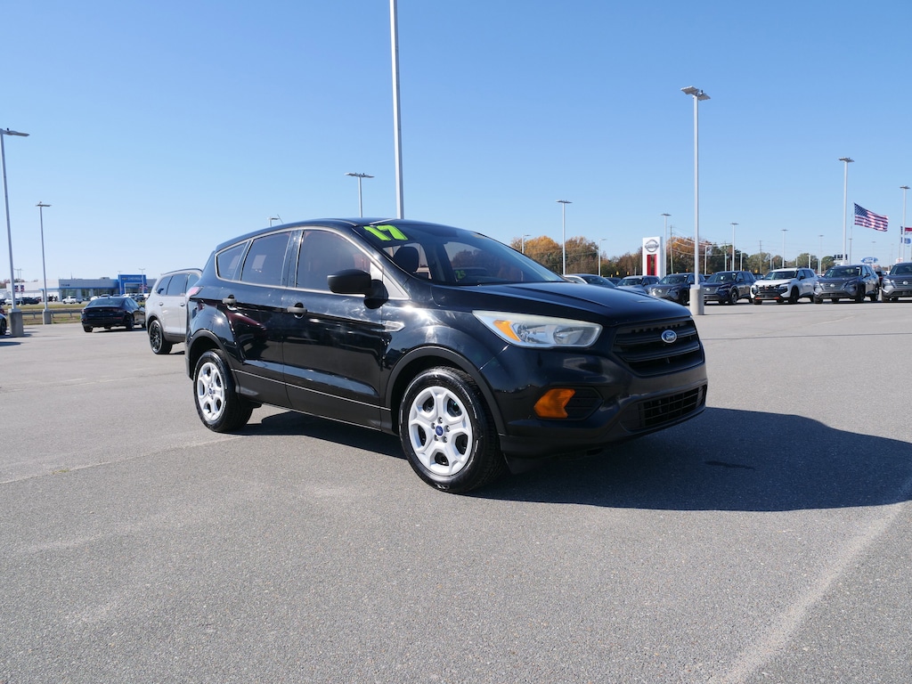 Shadow Black 2017 Ford Escape S 2.5L i-VCT 6-Speed Automatic FWD 17 Steel Wheel w/Sparkle Silver Cover Wheels, 3.51 Axle Ratio, 4-Wheel Disc Brakes, 6 Speakers, ABS brakes, Air Conditioning, AM/FM radio, Brake assist, Bumpers: body-color, CD player, Cloth Buckets w/60/40 Split Rear Seat, Compass, Delay-off headlights, Driver door bin, Driver vanity mirror, Dual front impact airbags, Dual front side impact airbags, Electronic Stability Control, Emergency communication system: 911 Assist, Exterior Parking Camera Rear, Four wheel independent suspension, Front anti-roll bar, Front Bucket Seats, Front Center Armrest, Front reading lights, Fully automatic headlights, Illuminated entry, Knee airbag, Low tire pressure warning, Occupant sensing airbag, Outside temperature display, Overhead airbag, Overhead console, Panic alarm, Passenger door bin, Passenger vanity mirror, Power door mirrors, Power steering, Power windows, Radio data system, Radio: AM/FM Single CD/MP3, Rear anti-roll bar, Rear window defroster, Rear window wiper, Remote keyless entry, Speed control, Speed-sensing steering, Split folding rear seat, Steering wheel mounted audio controls, SYNC Communications & Entertainment System, Tachometer, Telescoping steering wheel, Tilt steering wheel, Traction control, Trip computer, and Variably intermittent wipers.