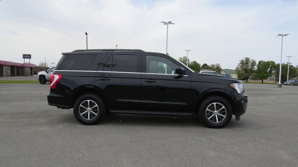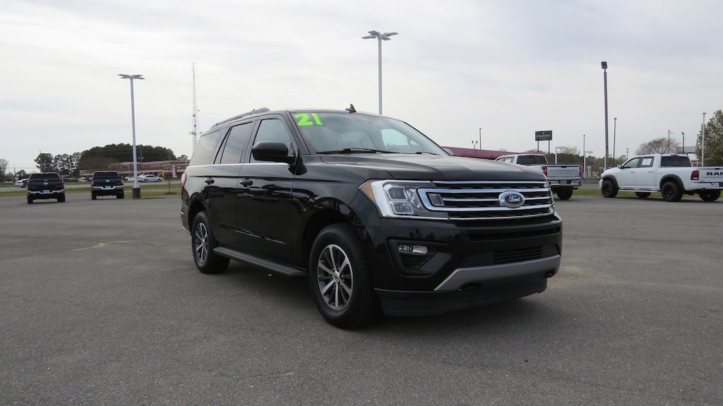 Black Metallic 2021 Ford Expedition XLT 4WD EcoBoost 3.5L V6 GTDi DOHC 24V Twin Turbocharged 10-Speed Automatic Equipment Group 200A Standard Package, 4WD, 18 Machined-Face Aluminum Wheels, 3.31 Axle Ratio, 3rd row seats: split-bench, 4-Wheel Disc Brakes, 6 Speakers, ABS brakes, Air Conditioning, Alloy wheels, AM/FM radio: SiriusXM, Auto High-beam Headlights, Auto-dimming Rear-View mirror, Automatic temperature control, Brake assist, Bumpers: body-color, Cloth Front Captain's Chairs, Compass, Delay-off headlights, Driver door bin, Driver vanity mirror, Dual front impact airbags, Dual front side impact airbags, Electronic Stability Control, Emergency communication system: SYNC 3 911 Assist, Exterior Parking Camera Rear, Four wheel independent suspension, Front anti-roll bar, Front Bucket Seats, Front Center Armrest, Front dual zone A/C, Front fog lights, Front reading lights, Fully automatic headlights, Garage door transmitter, Heated door mirrors, Illuminated entry, Leather steering wheel, Low tire pressure warning, Occupant sensing airbag, Outside temperature display, Overhead airbag, Overhead console, Panic alarm, Passenger door bin, Passenger vanity mirror, Power door mirrors, Power driver seat, Power steering, Power windows, Radio data system, Radio: AM/FM Stereo w/MP3 Capable, Rear air conditioning, Rear anti-roll bar, Rear reading lights, Rear window defroster, Rear window wiper, Reclining 3rd row seat, Remote keyless entry, Roof rack: rails only, Security system, SiriusXM Satellite Radio, Speed control, Speed-sensing steering, Speed-Sensitive Wipers, Split folding rear seat, Steering wheel mounted audio controls, SYNC 3 Communications & Entertainment System, Tachometer, Telescoping steering wheel, Tilt steering wheel, Traction control, Trip computer, Variably intermittent wipers, and Voltmeter.