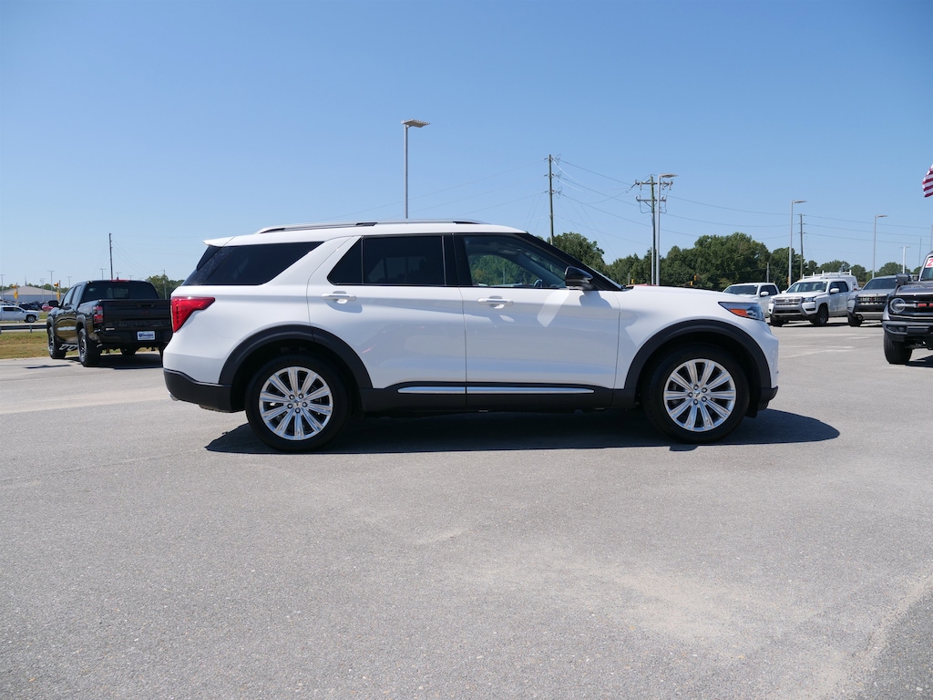 White 2021 Ford Explorer Limited 2.3L EcoBoost I-4 10-Speed Automatic 4WD Class III Trailer Tow Package, Equipment Group 301A, Limited Convenience Package (110V/150W AC Power Outlet, 3rd Row PowerFold Seat, Hands-Free Foot-Activated Liftgate, Memory Driver's Seat, Power Tilt/Telescoping Steering Column, and Sideview Mirrors w/Gloss Black Caps), 4WD, 12 Speakers, 20 Premium Painted Aluminum Wheels, 3.58 Non-Limited-Slip Rear Axle Ratio, 3rd row seats: bench, 4-Wheel Disc Brakes, ABS brakes, Air Conditioning, Alloy wheels, AM/FM radio: SiriusXM, Auto High-beam Headlights, Auto-dimming Rear-View mirror, Automatic temperature control, Brake assist, Bumpers: body-color, Compass, Delay-off headlights, Driver door bin, Driver vanity mirror, Dual front impact airbags, Dual front side impact airbags, Electronic Stability Control, Emergency communication system: SYNC 3 911 Assist, Exterior Parking Camera Rear, FordPass Connect, Four wheel independent suspension, Front anti-roll bar, Front Bucket Seats, Front Center Armrest, Front dual zone A/C, Front fog lights, Front reading lights, Fully automatic headlights, Garage door transmitter: HomeLink, Heated door mirrors, Heated front seats, Heated rear seats, Heated steering wheel, Illuminated entry, Knee airbag, Leather Heated/Ventilated Captain's Chairs, Leather steering wheel, Low tire pressure warning, Navigation System, Occupant sensing airbag, Outside temperature display, Overhead airbag, Overhead console, Panic alarm, Passenger door bin, Passenger vanity mirror, Power door mirrors, Power driver seat, Power Liftgate, Power passenger seat, Power steering, Power windows, Radio data system, Radio: B&O Sound System by Bang & Olufsen, Rain sensing wipers, Rear air conditioning, Rear anti-roll bar, Rear reading lights, Rear window defroster, Rear window wiper, Remote keyless entry, Roof rack: rails only, Security system, Speed control, Speed-sensing steering, Speed-Sensitive Wipers, Split folding rear seat, Spoiler, Steering wheel mounted audio controls, SYNC 3 Communications & Entertainment System, SYNC 3/Apple CarPlay/Android Auto, Tachometer, Telescoping steering wheel, Tilt steering wheel, Traction control, Trip computer, Turn signal indicator mirrors, Twin Panel Moonroof, Variably intermittent wipers, Ventilated front seats, Voice-Activated Touchscreen Navigation System, and Wheels: 20 10-Spoke Aluminum.