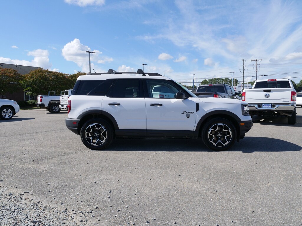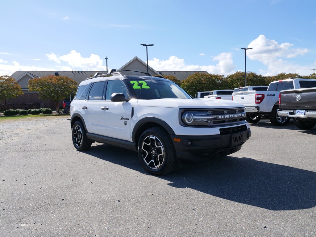 Recent Arrival! Oxford White 2022 Ford Bronco Sport Big Bend 4WD 1.5L EcoBoost 8-Speed Automatic Convenience Package (Front Driver & Passenger Seatback Zipper Pockets, Heated Front Bucket Seats, Intelligent Access (Lock/Unlock), Leather-Wrapped Steering Wheel, LED Fog Lamps, Rear Parking Sensors, Universal Garage Door Opener (UGDO), and Wireless Charging Pad), Equipment Group 200A, 3.80 Axle Ratio, 4-Wheel Disc Brakes, 6 Speakers, ABS brakes, Air Conditioning, Alloy wheels, AM/FM radio: SiriusXM, AM/FM Stereo, Auto High-beam Headlights, Automatic temperature control, Brake assist, Cargo Mat, Compass, Delay-off headlights, Driver door bin, Driver vanity mirror, Dual front impact airbags, Dual front side impact airbags, Electronic Stability Control, Emergency communication system: SYNC 3 911 Assist, Four wheel independent suspension, Front & Rear Floor Liners, Front anti-roll bar, Front Bucket Seats, Front Center Armrest, Front reading lights, Fully automatic headlights, Heated door mirrors, Illuminated entry, Knee airbag, Low tire pressure warning, Occupant sensing airbag, Outside temperature display, Overhead airbag, Overhead console, Panic alarm, Passenger door bin, Passenger vanity mirror, Power door mirrors, Power Moonroof, Power steering, Power windows, Radio data system, Rear anti-roll bar, Rear reading lights, Rear seat center armrest, Rear window defroster, Rear window wiper, Remote keyless entry, Roof rack: rails only, Security system, SiriusXM Radio, Speed control, Speed-sensing steering, Speed-Sensitive Wipers, Split folding rear seat, Steering wheel mounted audio controls, SYNC 3 Communications & Entertainment System, SYNC 3/Apple CarPlay/Android Auto, Tachometer, Telescoping steering wheel, Tilt steering wheel, Traction control, Trip computer, Unique Cloth Front Bucket Seats, Variably intermittent wipers, Wheels: 17 Carbonized Gray-Painted Aluminum, and Wheels: 18 Ebony Black-Painted Aluminum.