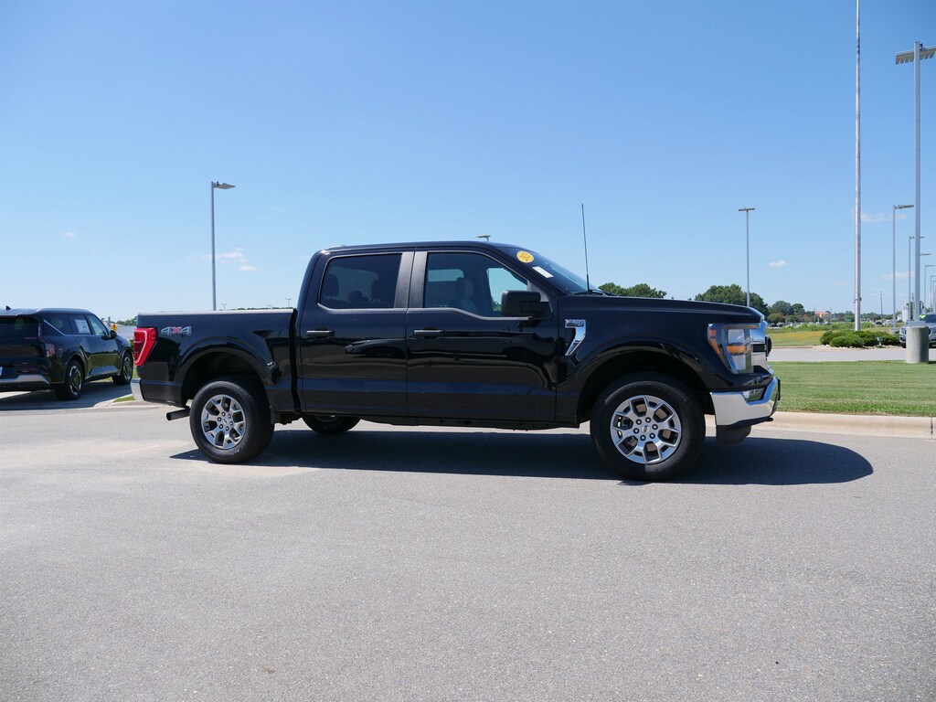 Black 2023 Ford F-150 XLT 4WD 10-Speed Automatic 3.5L V6 EcoBoost 4WD, 18" Silver Painted Aluminum Wheels, 3.31 Axle Ratio, 4-Wheel Disc Brakes, 6 Speakers, 8-Way Power Driver's Seat w/Power Lumbar, ABS brakes, Air Conditioning, Alloy wheels, AM/FM radio, Auto High-beam Headlights, Brake assist, Bumpers: chrome, Cloth 40/20/40 Front Seat, Compass, Delay-off headlights, Driver door bin, Driver vanity mirror, Dual front impact airbags, Dual front side impact airbags, Electronic Stability Control, Emergency communication system: SYNC 4 911 Assist, Exterior Parking Camera Rear, Front anti-roll bar, Front Center Armrest w/Storage, Front fog lights, Front License Plate Bracket, Front reading lights, Front wheel independent suspension, Fully automatic headlights, Heated door mirrors, Illuminated entry, Low tire pressure warning, Occupant sensing airbag, Outside temperature display, Overhead airbag, Overhead console, Panic alarm, Passenger door bin, Passenger vanity mirror, Power door mirrors, Power steering, Power windows, Radio data system, Radio: AM/FM Stereo w/6 Speakers, Rear reading lights, Rear step bumper, Rear window defroster, Remote keyless entry, Security system, Speed control, Speed-sensing steering, Split folding rear seat, Steering wheel mounted audio controls, SYNC 4, Tachometer, Telescoping steering wheel, Tilt steering wheel, Traction control, Trip computer, Variably intermittent wipers, Voltmeter, and Wheels: 17" Silver Painted Aluminum.