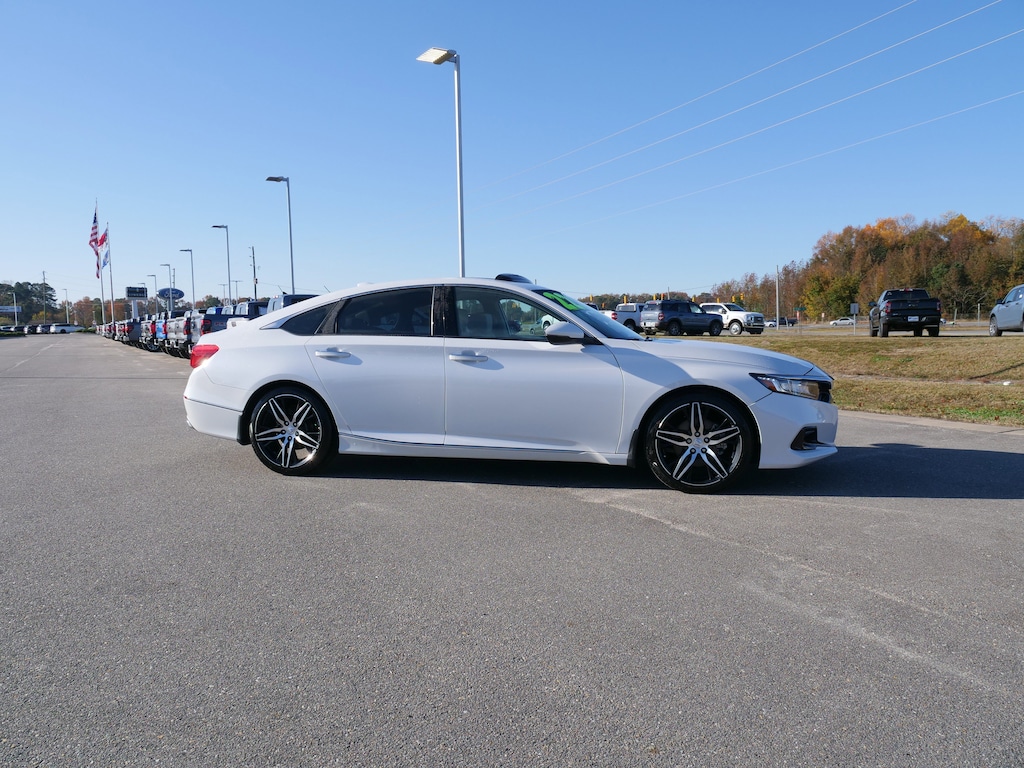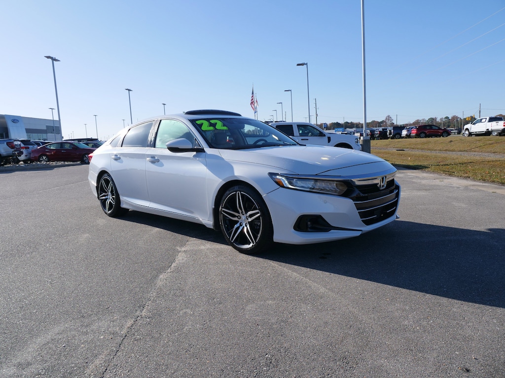 2022 Honda Accord Touring 2.0T FWD I4 DOHC 16V Turbocharged 10-Speed Automatic Leather, 10 Speakers, 4-Wheel Disc Brakes, ABS brakes, Adaptive Cruise Control: Adaptive Cruise Control (ACC) with Low-Speed Follow, Adaptive suspension, Air Conditioning, Alloy wheels, AM/FM radio: SiriusXM, Apple CarPlay/Android Auto, Auto High-beam Headlights, Auto-dimming Rear-View mirror, Automatic temperature control, Blind Spot Information (BSI) System warning, Brake assist, Bumpers: body-color, Compass, Delay-off headlights, Driver door bin, Driver vanity mirror, Dual front impact airbags, Dual front side impact airbags, Electronic Stability Control, Emergency communication system: HondaLink, Exterior Parking Camera Rear, Forward collision: Collision Mitigation Braking System (CMBS) + FCW mitigation, Four wheel independent suspension, Front anti-roll bar, Front Bucket Seats, Front Center Armrest, Front dual zone A/C, Front fog lights, Front reading lights, Fully automatic headlights, Garage door transmitter: HomeLink, Heads-Up Display, Heated & Ventilated Front Bucket Seats, Heated door mirrors, Heated front seats, Heated rear seats, Illuminated entry, Knee airbag, Lane Departure Warning System, Leather steering wheel, Low tire pressure warning, Memory seat, Navigation system: Honda Satellite-Linked Navigation System, Occupant sensing airbag, Outside temperature display, Overhead airbag, Overhead console, Panic alarm, Passenger door bin, Passenger vanity mirror, Perforated Leather Seat Trim, Power door mirrors, Power driver seat, Power moonroof, Power passenger seat, Power steering, Power windows, Radio data system, Radio: 450-Watt AM/FM/HD Premium Audio System, Rain sensing wipers, Rear anti-roll bar, Rear seat center armrest, Rear window defroster, Remote keyless entry, Security system, Speed control, Speed-sensing steering, Speed-Sensitive Wipers, Split folding rear seat, Steering wheel mounted audio controls, Tachometer, Telescoping steering wheel, Tilt steering wheel, Traction control, Trip computer, Turn signal indicator mirrors, Variably intermittent wipers, Ventilated front seats, and Wheels: 19 Machine-Finished Alloy w/Gray Inserts.
