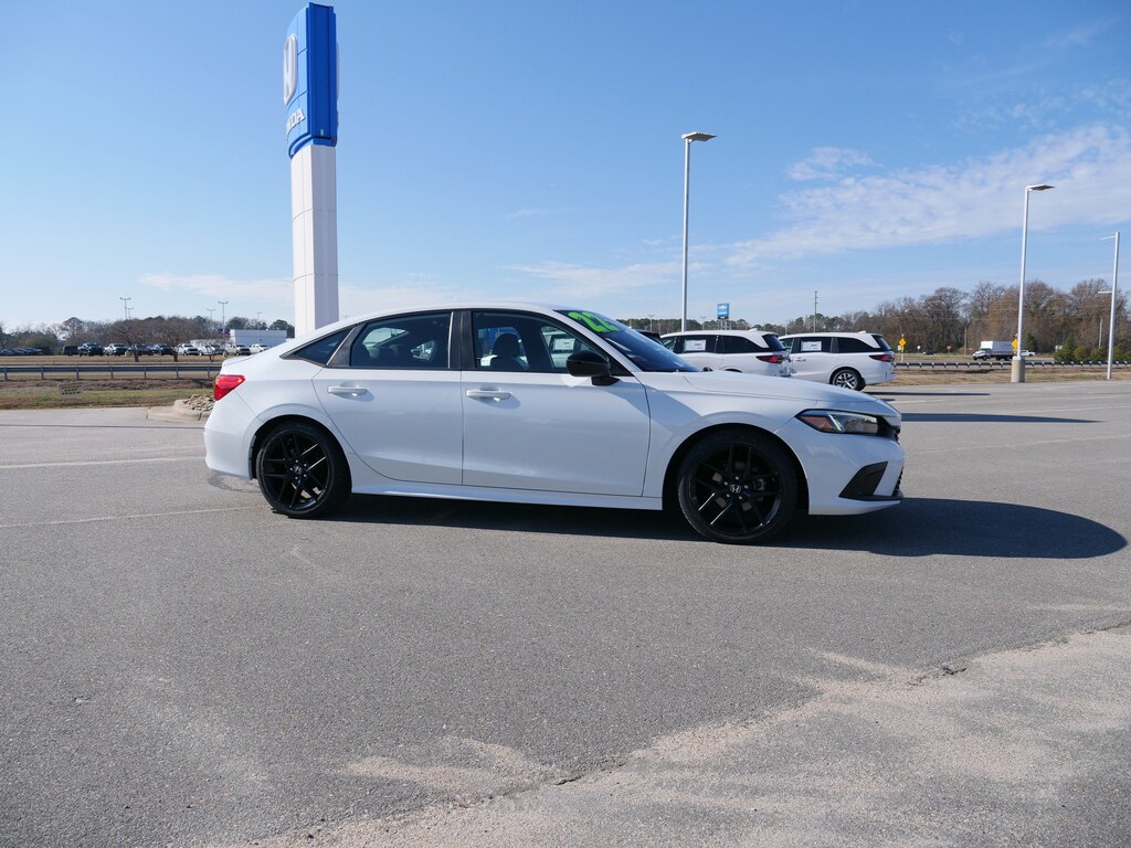 Platinum White 2022 Honda Civic Sport 2.0L I4 DOHC 16V i-VTEC CVT FWD Cloth, 4-Wheel Disc Brakes, 8 Speakers, ABS brakes, Adaptive Cruise Control: Adaptive Cruise Control (ACC) with Low-Speed Follow, Air Conditioning, Alloy wheels, AM/FM radio, Apple CarPlay/Android Auto, Auto High-beam Headlights, Automatic temperature control, Brake assist, Bumpers: body-color, Cloth Seat Trim, Delay-off headlights, Driver door bin, Driver vanity mirror, Dual front impact airbags, Dual front side impact airbags, Electronic Stability Control, Emergency communication system: HondaLink, Exterior Parking Camera Rear, Forward collision: Collision Mitigation Braking System (CMBS) + FCW mitigation, Four wheel independent suspension, Front anti-roll bar, Front Bucket Seats, Front Center Armrest, Front reading lights, Fully automatic headlights, Illuminated entry, Knee airbag, Leather Shift Knob, Leather steering wheel, Low tire pressure warning, Occupant sensing airbag, Outside temperature display, Overhead airbag, Panic alarm, Passenger door bin, Passenger vanity mirror, Power door mirrors, Power steering, Power windows, Radio data system, Radio: 180-Watt AM/FM Audio System, Rear anti-roll bar, Rear side impact airbag, Rear window defroster, Remote keyless entry, Security system, Speed control, Speed-sensing steering, Steering wheel mounted audio controls, Tachometer, Telescoping steering wheel, Tilt steering wheel, Traction control, Trip computer, and Wheels: 18 Gloss Black Alloy.
