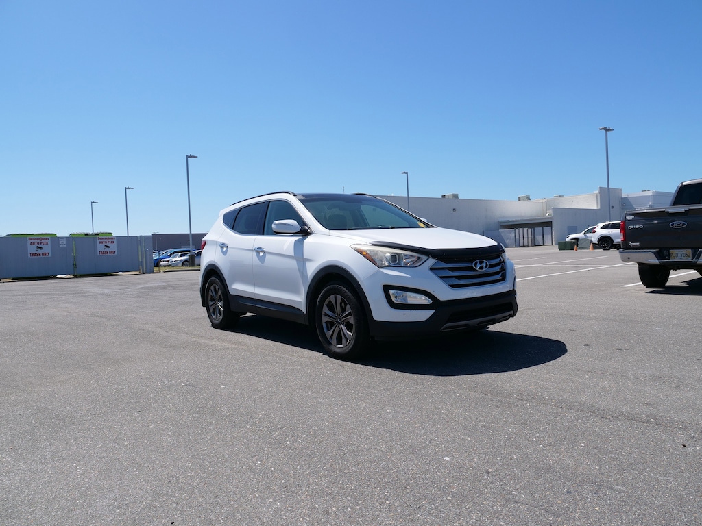 Frost White Pearl 2016 Hyundai Santa Fe Sport 2.4 Base 2.4L I4 DGI DOHC 16V 6-Speed Automatic with Shiftronic FWD Option Group 03, Popular Equipment Package 02 (Automatic Headlight Control, Fog Lights, Heated Front Seats, Power Driver Seat w/4-Way Lumbar Control, Radio: AM/FM/CD/MP3/SiriusXM Audio System, Roof Side Rails, and Windshield Wiper De-Icer), Premium Package 03 (Auto-Dimming Interior Mirror w/Homelink/Compass, Blind Spot Detection (BSD) System, Dual Zone Automatic Temperature Control, Electroluminescent Gauge Cluster, Lane Change Assist, Leather Seating Surfaces, Leather Wrapped Steering Wheel & Shift Knob, Manual Rear Side Window Shades, Power Front Passenger Seat, Proximity Key Entry w/Push Button Start, Rear Cross-Traffic Alert, Side Mirror-Mounted Turn Signal Indicators, and Sliding second row seats w/cargo area releases), Technology Package 04 (Driver's Integrated Memory Seat, Hands-Free Smart Liftgate w/Auto Open, Heated Rear Seats, Heated Steering Wheel, Panoramic Glass One-Touch Open Sunroof, Premium Door Sill Plates, Radio: Navigation System w/Dimension Premium Audio, Rear Parking Assistance System, and Ventilated Front Seats), 17 x 7 Aluminum Alloy Wheels, 4-Wheel Disc Brakes, 6 Speakers, ABS brakes, Air Conditioning, Alloy wheels, AM/FM radio: SiriusXM, Axle Ratio 3.648, Brake assist, Bumper Applique, Bumpers: body-color, Cargo Cover/Screen, Cargo Net, Cargo Tray, Carpeted Floor Mats, CD player, Driver door bin, Driver vanity mirror, Dual front impact airbags, Dual front side impact airbags, Electronic Stability Control, First Aid Kit, Four wheel independent suspension, Front anti-roll bar, Front Bucket Seats, Front Center Armrest, Front reading lights, Heated door mirrors, Illuminated entry, Knee airbag, Low tire pressure warning, Mudguards, Multi-Adjustable Bucket Seats, Occupant sensing airbag, Outside temperature display, Overhead airbag, Overhead console, Panic alarm, Passenger door bin, Passenger vanity mirror, Power door mirrors, Power steering, Power windows, Radio: AM/FM/SiriusXM/CD/MP3 Audio System, Rear anti-roll bar, Rear seat center armrest, Rear window defroster, Rear window wiper, Remote keyless entry, Security system, Speed control, Speed-sensing steering, Split folding rear seat, Spoiler, Stain-Resistant Cloth Seating Surfaces, Steering wheel mounted audio controls, Tachometer, Telescoping steering wheel, Tilt steering wheel, Traction control, Trip computer, Variably intermittent wipers, and Wheel Locks.