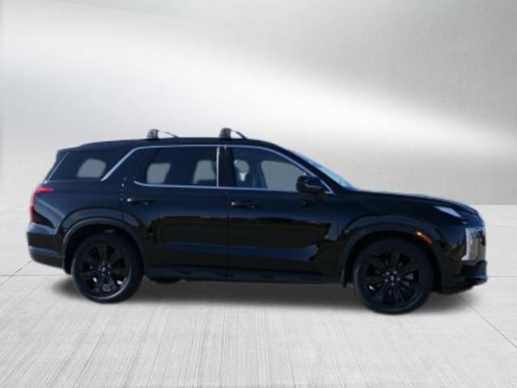 Abyss Black Pearl 2023 Hyundai Palisade XRT Cargo Package (Cargo Blocks, Cargo Net, and Cargo Tray), Option Group 01, 3.648 Axle Ratio, 3rd row seats: split-bench, 4-Wheel Disc Brakes, 6 Speakers, ABS brakes, Air Conditioning, Alloy wheels, AM/FM radio: SiriusXM, Apple CarPlay & Android Auto, Auto High-beam Headlights, Auto-dimming door mirrors, Auto-dimming Rear-View mirror, Auto-leveling suspension, Automatic temperature control, Brake assist, Bumpers: body-color, Carpeted Floor Mats, Delay-off headlights, Driver door bin, Driver vanity mirror, Dual front impact airbags, Dual front side impact airbags, Electronic Stability Control, Emergency communication system: Blue Link Connected Car Service (3-year complimentary subscription), Exterior Parking Camera Rear, First Aid Kit, Four wheel independent suspension, Front anti-roll bar, Front Bucket Seats, Front Center Armrest, Front dual zone A/C, Front reading lights, Fully automatic headlights, Garage door transmitter: HomeLink, H-Tex Leatherette Seat Trim, Heated door mirrors, Heated Front Bucket Seats, Heated front seats, Illuminated entry, Knee airbag, Low tire pressure warning, Navigation System, Occupant sensing airbag, Outside temperature display, Overhead airbag, Overhead console, Panic alarm, Passenger door bin, Passenger vanity mirror, Power door mirrors, Power driver seat, Power Liftgate, Power moonroof, Power passenger seat, Power steering, Power windows, Radio data system, Radio: AM/FM/MP3 Audio System, Rear air conditioning, Rear anti-roll bar, Rear audio controls, Rear Bumper Applique, Rear reading lights, Rear side impact airbag, Rear window defroster, Rear window wiper, Reclining 3rd row seat, Remote keyless entry, Security system, Speed control, Speed-sensing steering, Splash Trim, Split folding rear seat, Spoiler, Steering wheel mounted audio controls, Tachometer, Telescoping steering wheel, Tilt steering wheel, Traction control, Trip computer, Turn signal indicator mirrors, Variably intermittent wipers, and Wheels: 20" x 7.5J Dark Alloy w/Rugged Styling.