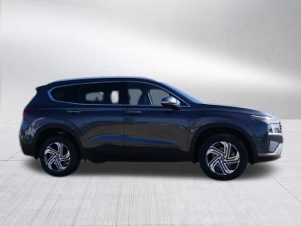 Portofino Gray 2023 Hyundai Santa Fe SEL Cargo Package (Cargo Net, Cargo Tray, and First Aid Kit), Option Group 01, AWD, Black Cloth, 18" x 7.5J Alloy Wheels, 4-Wheel Disc Brakes, 6 Speakers, ABS brakes, Air Conditioning, Alloy wheels, AM/FM radio: SiriusXM, Apple CarPlay & Android Auto, Auto High-beam Headlights, Automatic temperature control, Axle Ratio: 4.081, Brake assist, Bumpers: body-color, Cargo Cover/Screen, Carpeted Floor Mats, Delay-off headlights, Driver door bin, Driver vanity mirror, Dual front impact airbags, Dual front side impact airbags, Electronic Stability Control, Emergency communication system, Exterior Parking Camera Rear, Four wheel independent suspension, Front anti-roll bar, Front Bucket Seats, Front Center Armrest, Front dual zone A/C, Front reading lights, Fully automatic headlights, Heated door mirrors, Heated Front Bucket Seats, Heated front seats, Illuminated entry, Leather steering wheel, Low tire pressure warning, Mudguards, Navigation System, Occupant sensing airbag, Outside temperature display, Overhead airbag, Overhead console, Panic alarm, Passenger door bin, Passenger vanity mirror, Power door mirrors, Power driver seat, Power Liftgate, Power steering, Power windows, Radio: AM/FM Display Audio, Rear anti-roll bar, Rear seat center armrest, Rear window defroster, Rear window wiper, Remote keyless entry, Security system, Speed control, Speed-sensing steering, Split folding rear seat, Spoiler, Stain-Resistant Cloth Seat Trim, Steering wheel mounted audio controls, Tachometer, Telescoping steering wheel, Tilt steering wheel, Traction control, Trip computer, Turn signal indicator mirrors, and Variably intermittent wipers.