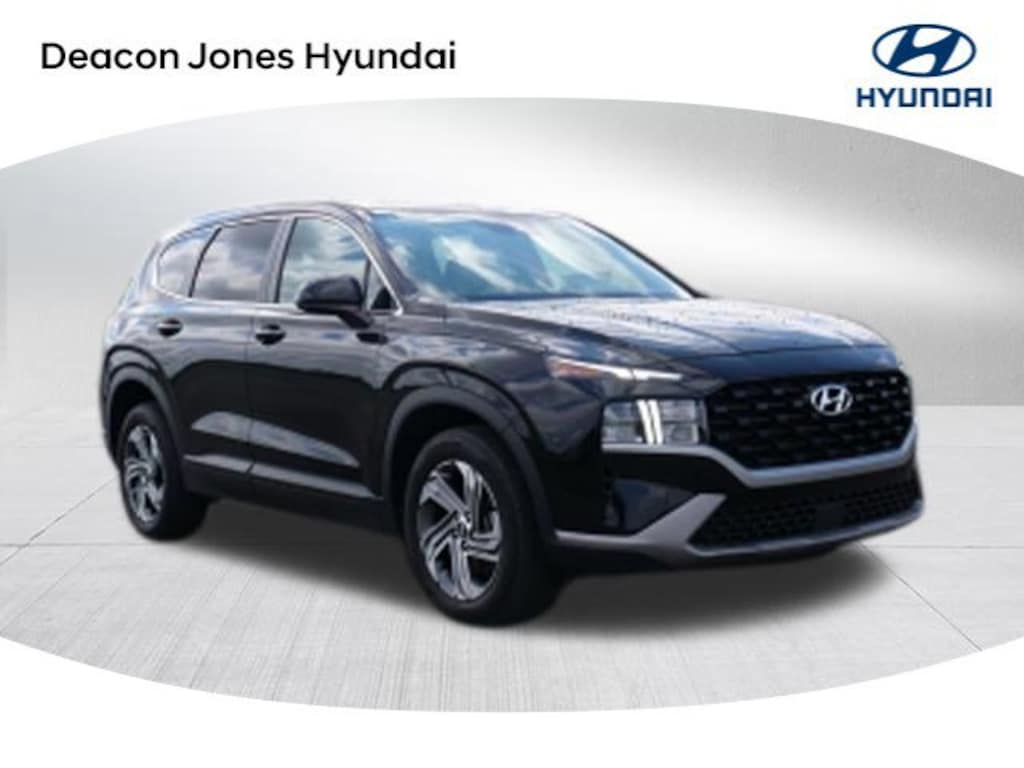 Twilight Black 2023 Hyundai Santa Fe SE Option Group 01, Beige Cloth, 18" x 7.5J Alloy Wheels, 4-Wheel Disc Brakes, 6 Speakers, ABS brakes, Air Conditioning, Alloy wheels, AM/FM radio, Apple CarPlay & Android Auto, Auto High-beam Headlights, Axle Ratio: 3.798, Brake assist, Bumper Applique, Bumpers: body-color, Cargo Cover/Screen, Carpeted Floor Mats, Delay-off headlights, Driver door bin, Driver vanity mirror, Dual front impact airbags, Dual front side impact airbags, Electronic Stability Control, Exterior Parking Camera Rear, Four wheel independent suspension, Front anti-roll bar, Front Bucket Seats, Front Center Armrest, Front reading lights, Fully automatic headlights, Illuminated entry, Low tire pressure warning, Occupant sensing airbag, Outside temperature display, Overhead airbag, Overhead console, Panic alarm, Passenger door bin, Passenger vanity mirror, Power door mirrors, Power steering, Power windows, Radio: AM/FM Display Audio, Rear anti-roll bar, Rear seat center armrest, Rear window defroster, Rear window wiper, Remote keyless entry, Security system, Speed control, Speed-sensing steering, Split folding rear seat, Spoiler, Stain-Resistant Cloth Seat Trim, Steering wheel mounted audio controls, Tachometer, Telescoping steering wheel, Tilt steering wheel, Traction control, Trip computer, and Variably intermittent wipers.