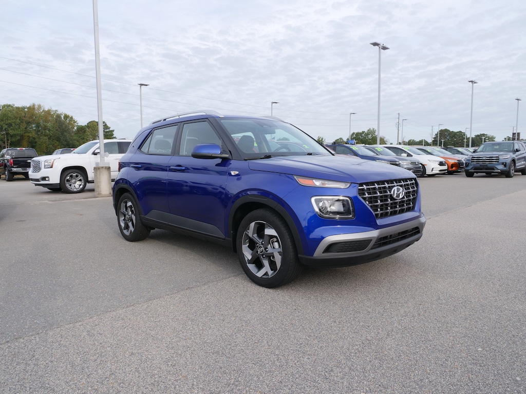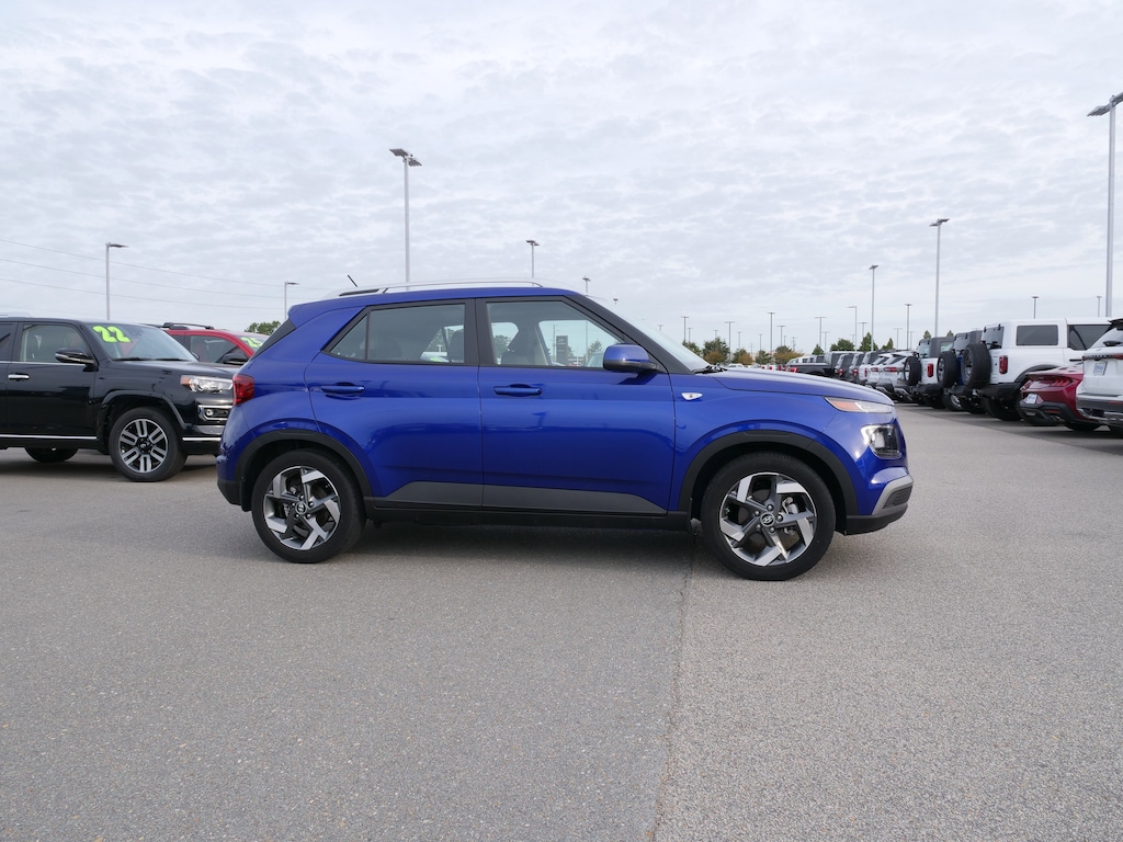 Intense Blue 2023 Hyundai Venue SEL FWD I4 CVT Option Group 01, 4-Wheel Disc Brakes, 6 Speakers, 6.052 Axle Ratio, 6.5J x 17 Alloy Wheels, ABS brakes, Air Conditioning, Alloy wheels, AM/FM radio, Apple CarPlay & Android Auto, Auto High-beam Headlights, Automatic temperature control, Brake assist, Bumpers: body-color, Cargo Net, Cargo Tray, Carpeted Floor Mats, Cloth Seat Trim, Delay-off headlights, Driver door bin, Driver vanity mirror, Dual front impact airbags, Dual front side impact airbags, Electronic Stability Control, Front anti-roll bar, Front Bucket Seats, Front Center Armrest, Front reading lights, Front wheel independent suspension, Fully automatic headlights, Illuminated entry, Leather Shift Knob, Leather steering wheel, Low tire pressure warning, Mudguards, Occupant sensing airbag, Outside temperature display, Overhead airbag, Overhead console, Panic alarm, Passenger door bin, Passenger vanity mirror, Power door mirrors, Power moonroof, Power steering, Power windows, Radio: AM/FM/HD Display Audio, Rear Seat Cup Holder, Rear window defroster, Rear window wiper, Remote keyless entry, Roof rack: rails only, Security system, Speed control, Speed-sensing steering, Split folding rear seat, Spoiler, Steering wheel mounted audio controls, Tachometer, Telescoping steering wheel, Tilt steering wheel, Traction control, Trip computer, and Variably intermittent wipers.