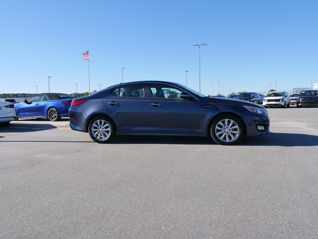 Smokey Blue 2015 Kia Optima EX FWD 6-Speed Automatic with Sportmatic 2.4L I4 DGI DOHC Gray Leather, 17" Alloy Wheels, 4-Wheel Disc Brakes, 6 Speakers, ABS brakes, Air Conditioning, Alloy wheels, AM/FM radio: SiriusXM, AM/FM/CD/MP3 Radio, Auto-dimming Rear-View mirror, Automatic temperature control, Brake assist, Bumpers: body-color, Cargo Mat, Cargo Net, CD player, Compass, Delay-off headlights, Driver door bin, Driver vanity mirror, Dual front impact airbags, Dual front side impact airbags, Electronic Stability Control, Four wheel independent suspension, Front anti-roll bar, Front Bucket Seats, Front Center Armrest, Front dual zone A/C, Front fog lights, Front reading lights, Fully automatic headlights, Heated door mirrors, Illuminated entry, Leather Seat Trim, Low tire pressure warning, Occupant sensing airbag, Outside temperature display, Overhead airbag, Overhead console, Panic alarm, Passenger door bin, Passenger vanity mirror, Power door mirrors, Power driver seat, Power steering, Power windows, Rear anti-roll bar, Rear reading lights, Rear seat center armrest, Rear window defroster, Remote keyless entry, Security system, Speed control, Speed-sensing steering, Split folding rear seat, Steering wheel mounted audio controls, Tachometer, Telescoping steering wheel, Tilt steering wheel, Traction control, Trip computer, Turn signal indicator mirrors, and Variably intermittent wipers.