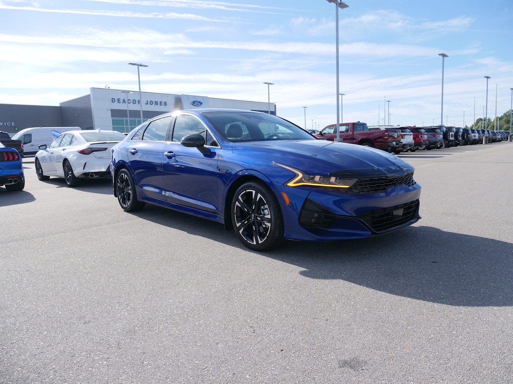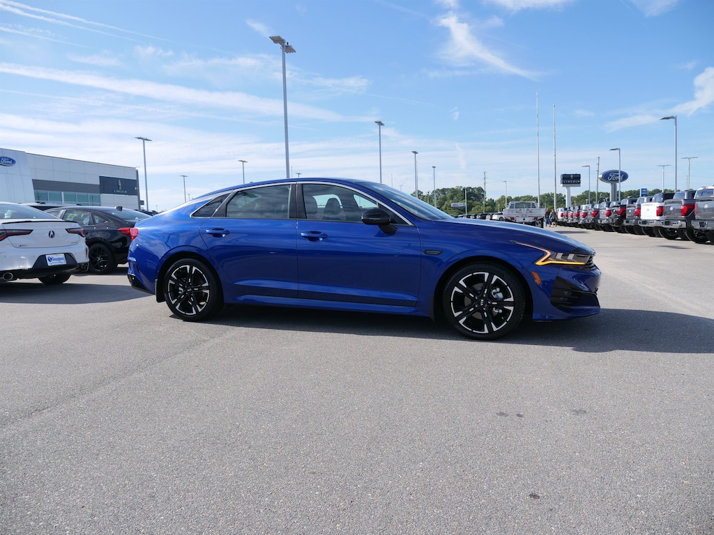 Sapphire Blue 2021 Kia K5 GT-Line AWD 1.6L I4 DGI 8-Speed Automatic 4-Wheel Disc Brakes, 6 Speakers, ABS brakes, Air Conditioning, Alloy wheels, AM/FM radio: SiriusXM, Apple CarPlay & Android Auto, Auto High-beam Headlights, Automatic temperature control, Brake assist, Bumpers: body-color, Carpeted Floor Mats, Cloth/Leatherette Seat Trim, Delay-off headlights, Driver door bin, Driver vanity mirror, Dual front impact airbags, Dual front side impact airbags, Electronic Stability Control, Four wheel independent suspension, Front anti-roll bar, Front Bucket Seats, Front Center Armrest, Front dual zone A/C, Front fog lights, Front reading lights, Fully automatic headlights, Heated door mirrors, Heated Front Bucket Seats, Heated front seats, Heated steering wheel, Illuminated entry, Knee airbag, Low tire pressure warning, Occupant sensing airbag, Outside temperature display, Overhead airbag, Overhead console, Panic alarm, Passenger door bin, Passenger vanity mirror, Power door mirrors, Power driver seat, Power moonroof, Power steering, Power windows, Radio data system, Radio: AM/FM/MP3/SiriusXM Audio System, Rear anti-roll bar, Rear seat center armrest, Rear side impact airbag, Rear window defroster, Remote keyless entry, Security system, Speed control, Speed-sensing steering, Split folding rear seat, Spoiler, Sport steering wheel, Steering wheel mounted audio controls, Tachometer, Telescoping steering wheel, Tilt steering wheel, Traction control, Trip computer, Turn signal indicator mirrors, Variably intermittent wipers, and Wheels: 7.5J x 18 Graphite Machined Finish Alloy.