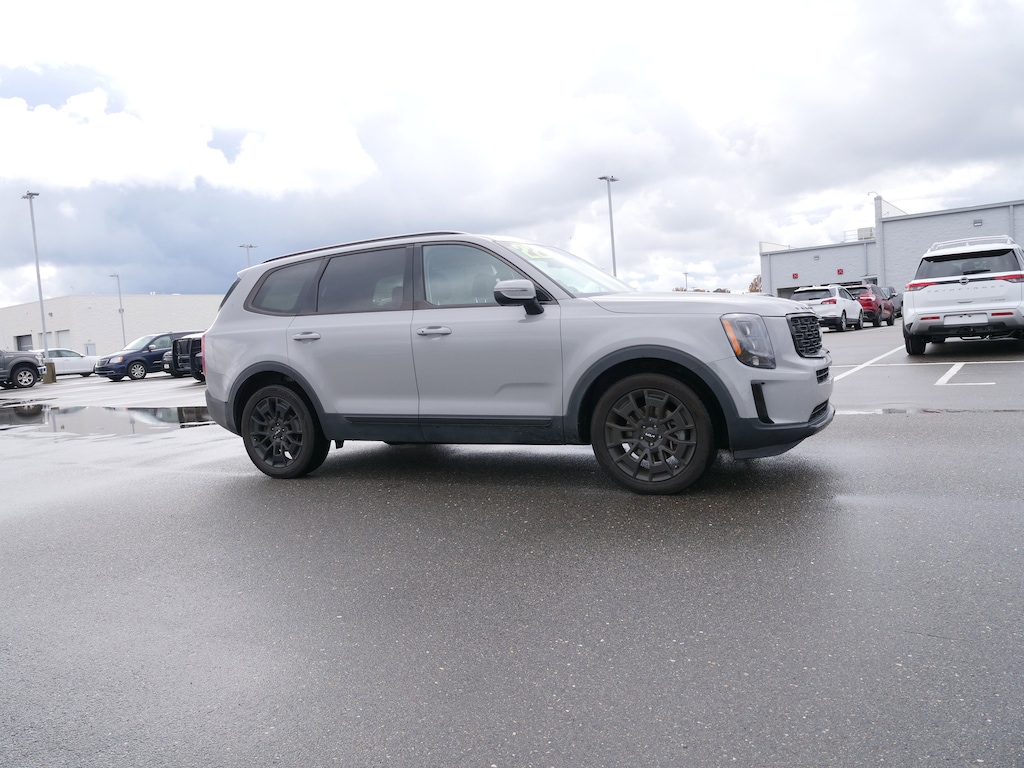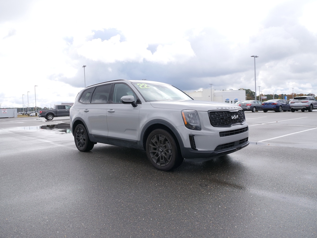 Wolf Gray 2022 Kia Telluride EX 3.8L V6 DOHC 8-Speed Automatic AWD EX Premium Package (20 x 7.5 Machined Alloy Wheels, 2nd Row Captain Chairs, LED Headlamps, and Satin Chrome Roof Rails), Nightfall Edition Package (Black Finish Radiator Grille, Exclusive Black Headlight Bezels, Front & Rear Gloss Black Finish Bumper Skid Plates, Gloss Black Finish Exterior Emblems, Gloss Black Finish Front & Rear Door Garnish, Gloss Black Finish Roof Rails, and Wheels: 20 x 7.5 Exclusive Black Alloy), 3.648 Axle Ratio, 3rd row seats: split-bench, 4-Wheel Disc Brakes, 6 Speakers, ABS brakes, Air Conditioning, Alloy wheels, AM/FM radio: SiriusXM, Apple CarPlay & Android Auto, Auto-dimming Rear-View mirror, Automatic temperature control, Brake assist, Bumpers: body-color, Carpeted Floor Mats, Compass, Delay-off headlights, Driver door bin, Driver vanity mirror, Dual front impact airbags, Dual front side impact airbags, Electronic Stability Control, Emergency communication system: 911 Connect, Four wheel independent suspension, Front anti-roll bar, Front Bucket Seats, Front Center Armrest, Front dual zone A/C, Front reading lights, Fully automatic headlights, Heated & Ventilated Front Bucket Seats, Heated door mirrors, Heated front seats, Heated steering wheel, Illuminated entry, Knee airbag, Leather Seat Trim, Leather Shift Knob, Leather steering wheel, Low tire pressure warning, Navigation System, Occupant sensing airbag, Outside temperature display, Overhead airbag, Overhead console, Panic alarm, Passenger door bin, Passenger vanity mirror, Power door mirrors, Power driver seat, Power Liftgate, Power moonroof, Power passenger seat, Power steering, Power windows, Radio data system, Radio: AM/FM Display Audio System, Rear air conditioning, Rear anti-roll bar, Rear audio controls, Rear reading lights, Rear seat center armrest, Rear window defroster, Rear window wiper, Reclining 3rd row seat, Remote keyless entry, Roof rack: rails only, Security system, Smart Key w/ Push Button and Remote Start, Speed control, Speed-sensing steering, Split folding rear seat, Spoiler, Steering wheel mounted audio controls, Tachometer, Telescoping steering wheel, Tilt steering wheel, Traction control, Trip computer, Turn signal indicator mirrors, Variably intermittent wipers, Ventilated front seats, and Wheels: 18 x 7.5 Machined Alloy.