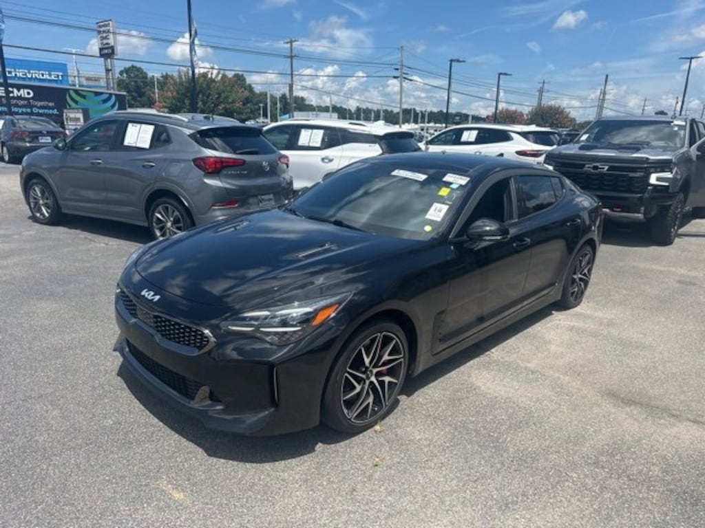 Aurora Black 2023 Kia Stinger GT-Line I4 8-Speed Automatic AWD GT-Line Apex Special Edition Package (Black Exhaust Tips, Black Exterior Mirrors, Black Fender Garnish, Brembo Brakes, and Carbon Fiber Interior Trim), Sun & Sound Package (8-Way Power Adjustable Passenger Seat, Power Tilt & Slide Sunroof w/One-Touch, and Radio: harmon/kardon AM/FM/MP3/HD Audio System), 4-Wheel Disc Brakes, 9 Speakers, ABS brakes, Air Conditioning, Alloy wheels, AM/FM radio: SiriusXM, Anti-whiplash front head restraints, Apple CarPlay & Android Auto, Auto High-beam Headlights, Auto-dimming Rear-View mirror, Automatic temperature control, Brake assist, Bumpers: body-color, Carpeted Floor Mat, Delay-off headlights, Driver door bin, Driver vanity mirror, Dual front impact airbags, Dual front side impact airbags, Electronic Stability Control, Emergency communication system, Exterior Parking Camera Rear, Four wheel independent suspension, Front anti-roll bar, Front Bucket Seats, Front Center Armrest, Front dual zone A/C, Front reading lights, Fully automatic headlights, Heated door mirrors, Heated Front Bucket Seats, Heated front seats, Heated steering wheel, Illuminated entry, Knee airbag, Leather Seat Trim, Low tire pressure warning, Navigation System, Occupant sensing airbag, Outside temperature display, Overhead airbag, Overhead console, Panic alarm, Passenger door bin, Passenger vanity mirror, Power door mirrors, Power driver seat, Power steering, Power windows, Radio: AM/FM/MP3/HD Audio System, Rain sensing wipers, Rear air conditioning, Rear anti-roll bar, Rear seat center armrest, Rear window defroster, Remote keyless entry, Seat Back Cargo Tray, Security system, Smart Key w/ Push Button and Remote Start, Speed control, Speed-Sensitive Wipers, Split folding rear seat, Sport steering wheel, Steering wheel mounted audio controls, Tachometer, Telescoping steering wheel, Tilt steering wheel, Traction control, Trip computer, Turn signal indicator mirrors, Variably intermittent wipers, and Wheels: 8.0J x 18 Vertex Alloy.