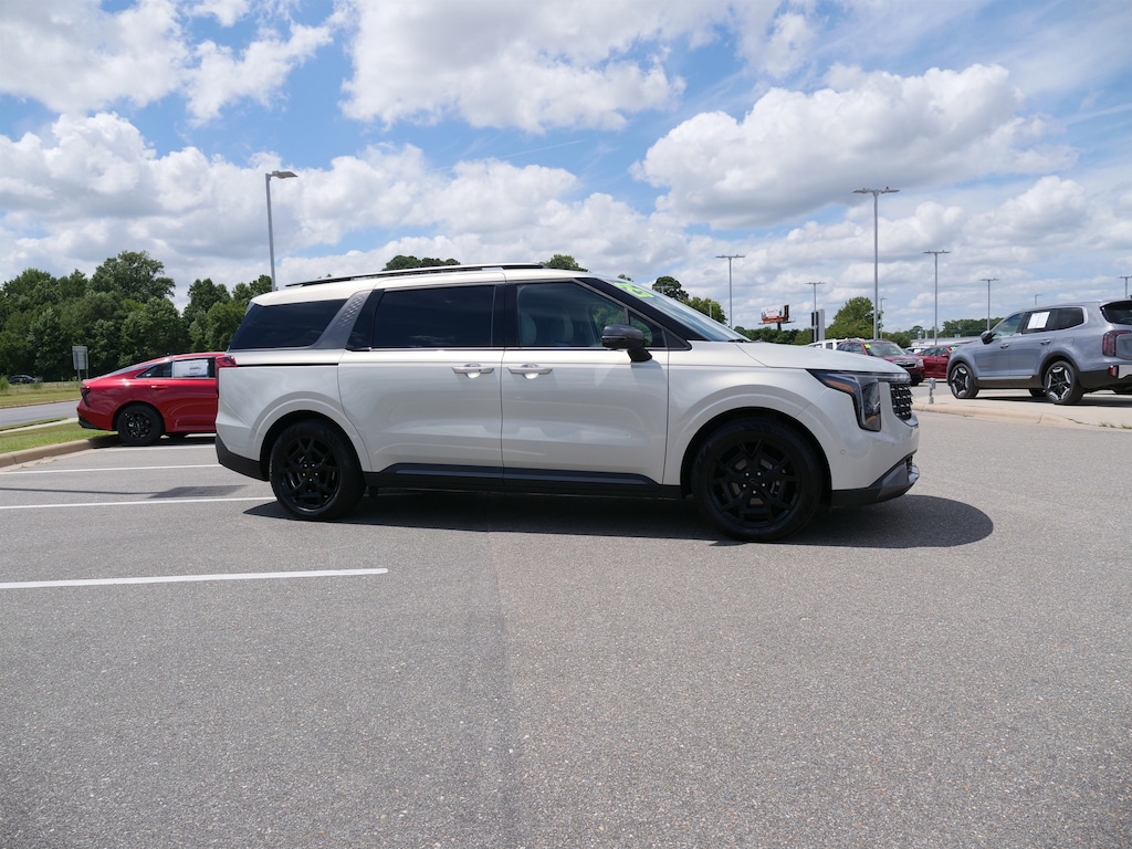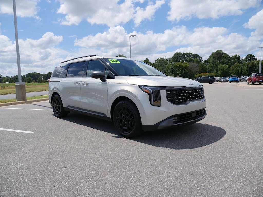 Ivory Silver 2025 Kia Carnival SX Prestige FWD 8-Speed Automatic V6 12 Speakers, 3.51 Axle Ratio, 3rd row seats: split-bench, 4-Wheel Disc Brakes, ABS brakes, Air Conditioning, Alloy wheels, AM/FM radio: SiriusXM, Apple CarPlay & Android Auto, Auto High-beam Headlights, Auto-dimming Rear-View mirror, Automatic temperature control, Brake assist, Bumpers: body-color, Carpeted Floor Mats (8-Passenger), Compass, Delay-off headlights, Driver door bin, Driver vanity mirror, Dual front impact airbags, Dual front side impact airbags, Electronic Stability Control, Emergency communication system, Exterior Parking Camera Rear, Four wheel independent suspension, Front anti-roll bar, Front Bucket Seats, Front Center Armrest, Front dual zone A/C, Front fog lights, Front reading lights, Fully automatic headlights, Garage door transmitter: HomeLink, Heads-Up Display, Heated & Ventilated Front Bucket Seats, Heated door mirrors, Heated front seats, Heated steering wheel, Illuminated entry, Knee airbag, Leather Shift Knob, Leather steering wheel, Low tire pressure warning, Memory seat, Navigation system: AVN 5.0 Navigation System, Occupant sensing airbag, Outside temperature display, Overhead airbag, Overhead console, Panic alarm, Passenger door bin, Passenger vanity mirror, Power 2nd-Row Moonroof, Power door mirrors, Power driver seat, Power Liftgate, Power moonroof, Power passenger seat, Power steering, Power windows, Pure Leather Seat Trim, Radio: AM/FM/HD Audio System, Rain sensing wipers, Rear air conditioning, Rear anti-roll bar, Rear reading lights, Rear window defroster, Rear window wiper, Reclining 3rd row seat, Remote keyless entry, Security system, Speed control, Speed-sensing steering, Split folding rear seat, Spoiler, Steering wheel mounted audio controls, Tachometer, Telescoping steering wheel, Tilt steering wheel, Traction control, Trailer Prewire Harness, Trip computer, Turn signal indicator mirrors, Variably intermittent wipers, Ventilated front seats, and Wheels: 7.5J x 19" Alloy Dark Edition.