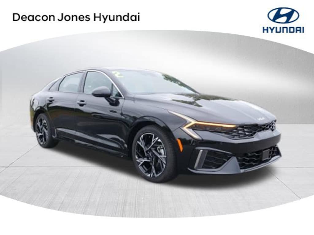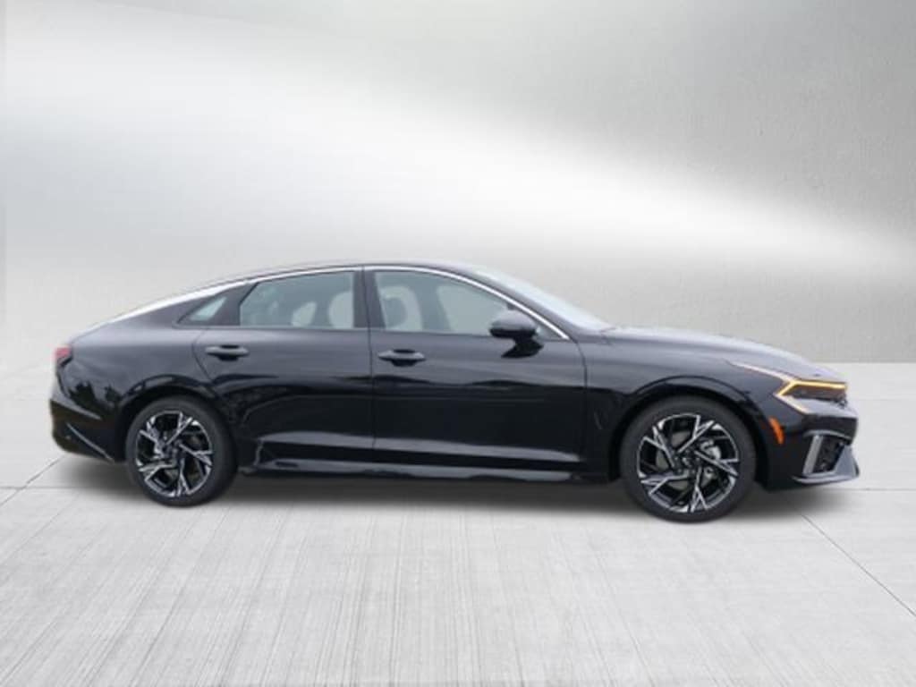 Aurora Black Pearl 2025 Kia K5 GT-Line 4-Wheel Disc Brakes, 6 Speakers, ABS brakes, Air Conditioning, Alloy wheels, AM/FM radio: SiriusXM, Auto High-beam Headlights, Automatic temperature control, Brake assist, Bumpers: body-color, Carpeted Floor Mats, Delay-off headlights, Driver door bin, Driver vanity mirror, Dual front impact airbags, Dual front side impact airbags, Electronic Stability Control, Emergency communication system: Kia Connect (includes 1 year free trial), Four wheel independent suspension, Front anti-roll bar, Front Bucket Seats, Front Center Armrest, Front dual zone A/C, Front fog lights, Front reading lights, Fully automatic headlights, Heated door mirrors, Heated Front Bucket Seats, Heated front seats, Heated steering wheel, Illuminated entry, Knee airbag, Leather Shift Knob, Leather steering wheel, Low tire pressure warning, Navigation System, Occupant sensing airbag, Outside temperature display, Overhead airbag, Overhead console, Panic alarm, Passenger door bin, Passenger vanity mirror, Power door mirrors, Power driver seat, Power steering, Power windows, Radio data system, Radio: AM/FM Audio System, Rear anti-roll bar, Rear seat center armrest, Rear side impact airbag, Rear window defroster, Remote keyless entry, Security system, Speed control, Speed-sensing steering, Split folding rear seat, Sport steering wheel, Steering wheel mounted audio controls, Tachometer, Telescoping steering wheel, Tilt steering wheel, Traction control, Trip computer, Turn signal indicator mirrors, Variably intermittent wipers, and Wheels: 18" x 7.5J Gloss Black Machined Finish Alloy.