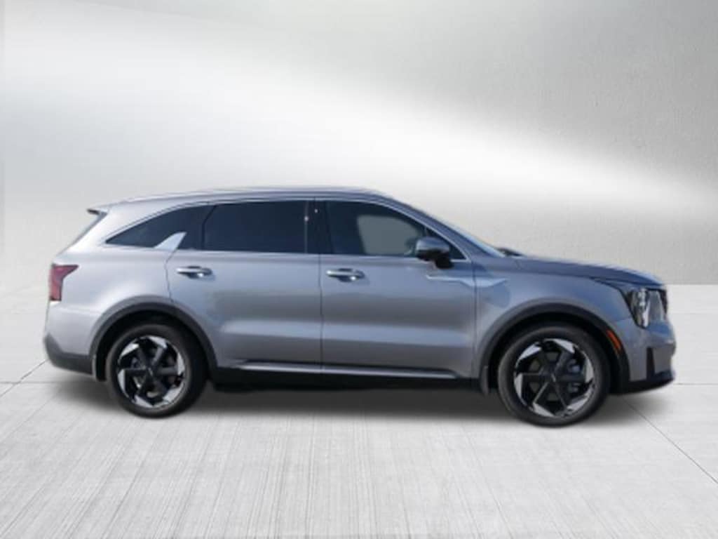 Steel Gray 2025 Kia Sorento Hybrid SX Prestige 1.6L Turbo GDI 4-Cylinder, 12 Speakers, 3rd row seats: split-bench, 4-Wheel Disc Brakes, ABS brakes, Air Conditioning, All Weather Floor Mats, Alloy wheels, AM/FM radio: SiriusXM, Apple CarPlay & Android Auto, Auto High-beam Headlights, Auto-dimming Rear-View mirror, Automatic temperature control, Brake assist, Bumpers: body-color, Delay-off headlights, Driver door bin, Driver vanity mirror, Dual front impact airbags, Dual front side impact airbags, Electronic Stability Control, Emergency communication system: 911 Connect, Exterior Parking Camera Rear, Four wheel independent suspension, Front anti-roll bar, Front Bucket Seats, Front Center Armrest, Front dual zone A/C, Front fog lights, Front reading lights, Fully automatic headlights, Garage door transmitter: HomeLink, Heated & Ventilated Front Bucket Seats, Heated door mirrors, Heated front seats, Heated rear seats, Heated steering wheel, Illuminated entry, Knee airbag, Leather steering wheel, Low tire pressure warning, Memory seat, Navigation System, Occupant sensing airbag, Outside temperature display, Overhead airbag, Overhead console, Panic alarm, Passenger door bin, Passenger vanity mirror, Perforated Genuine Leather Seat Trim, Power door mirrors, Power driver seat, Power Liftgate, Power moonroof, Power passenger seat, Power steering, Power windows, Radio data system, Radio: AM/FM/SiriusXM Audio System, Rain sensing wipers, Rear air conditioning, Rear anti-roll bar, Rear reading lights, Rear window defroster, Rear window wiper, Remote keyless entry, Security system, Speed control, Speed-sensing steering, Split folding rear seat, Spoiler, Steering wheel mounted audio controls, Tachometer, Telescoping steering wheel, Tilt steering wheel, Traction control, Trip computer, Turn signal indicator mirrors, Variably intermittent wipers, Ventilated front seats, and Wheels: 19" Machine-Finished Aero Alloy.