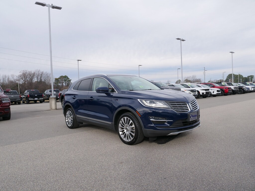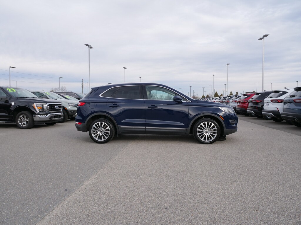 Rhapsody Blue 2018 Lincoln MKC Reserve FWD 2.0L Turbocharged 6-Speed Automatic Class II Trailer Tow Package (3000 lbs), Equipment Group 300A Reserve, 10 Speakers, 3.36 Axle Ratio, 4-Wheel Disc Brakes, ABS brakes, Air Conditioning, Alloy wheels, AM/FM radio: SiriusXM, AppLink/Apple CarPlay and Android Auto, Auto tilt-away steering wheel, Auto-dimming Rear-View mirror, Automatic temperature control, Blind spot sensor: warning, Brake assist, Bumpers: body-color, CD player, Compass, Delay-off headlights, Driver door bin, Driver vanity mirror, Dual front impact airbags, Dual front side impact airbags, Electronic Stability Control, Emergency communication system: SYNC 3 911 Assist, Exterior Parking Camera Rear, Four wheel independent suspension, Front anti-roll bar, Front Bucket Seats, Front Center Armrest, Front dual zone A/C, Front fog lights, Front reading lights, Fully automatic headlights, Garage door transmitter: HomeLink, Genuine wood dashboard insert, Genuine wood door panel insert, Heated door mirrors, Heated front seats, High-Intensity Discharge Headlights, Illuminated entry, Knee airbag, Low tire pressure warning, Memory seat, Navigation System, Occupant sensing airbag, Outside temperature display, Overhead airbag, Overhead console, Panic alarm, Passenger door bin, Passenger vanity mirror, Power door mirrors, Power driver seat, Power Liftgate, Power moonroof: Vista Roof, Power passenger seat, Power steering, Power windows, Prem Heated & Cooled Leather-Trimmed Bucket Seats, Radio data system, Radio: Audio System w/CD/MP3/Navigation, Rear anti-roll bar, Rear Parking Sensors, Rear reading lights, Rear seat center armrest, Rear window defroster, Rear window wiper, Remote keyless entry, Roof rack: rails only, Security system, SiriusXM Satellite Radio, Speed control, Speed-sensing steering, Speed-Sensitive Wipers, Split folding rear seat, Spoiler, Steering wheel memory, Steering wheel mounted audio controls, SYNC 3 Communications & Entertainment System, Tachometer, Telescoping steering wheel, Tilt steering wheel, Traction control, Trip computer, Turn signal indicator mirrors, Variably intermittent wipers, Ventilated front seats, and Wheels: 18 Bright Machined w/Dark Pockets.