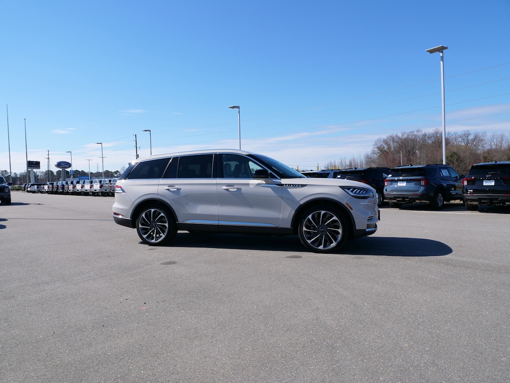 Ceramic Pearl Metallic Tri-Coat 2022 Lincoln Aviator Reserve AWD 3.0L V6 10-Speed Automatic Class IV Trailer Tow Package (4-Pin & 7-Pin Connectors, Blind Spot Information System, Class IV Hitch & Wiring, Smart Trailer Tow, and Trailer Sway Control), Elements Package Plus (Auto Air Refresh, Auto Heated/Ventilated Driver & Passenger Seats, Heated Steering Wheel, Heated VisioBlade Wipers, and Heated/Ventilated 2nd Row Outboard Seats), Equipment Group 201A (Head-Up Display and Phone As A Key), Lincoln Co-Pilot360 1.5 Plus (Active Park Assist 2.0, Evasive Steering Assist, Intelligent Adaptive Cruise Control, and Reverse Brake Assist), Luxury Package (30-Way Perfect Position Seats w/Active Motion, Radio: Revel Ultima 3D Audio System w/28 Speakers, and Rear Door Sunshades), 14 Speakers, 2nd Row Bench Seat, 3.58 Axle Ratio, 3rd row seats: split-bench, 4-Wheel Disc Brakes, ABS brakes, Adaptive suspension, Air Conditioning, All-Weather 1st & 2nd Row Floor Liners (16A), Alloy wheels, AM/FM radio: SiriusXM, Audio memory, Auto High-beam Headlights, Auto-dimming door mirrors, Auto-dimming Rear-View mirror, Automatic temperature control, Brake assist, Bumpers: body-color, Compass, Delay-off headlights, Driver door bin, Driver vanity mirror, Dual front impact airbags, Dual front side impact airbags, Electronic Stability Control, Emergency communication system, Four wheel independent suspension, Front anti-roll bar, Front Bucket Seats, Front Center Armrest, Front dual zone A/C, Front License Plate Bracket, Front reading lights, Fully automatic headlights, Garage door transmitter, Heated door mirrors, Heated front seats, HVAC memory, Illuminated entry, Knee airbag, Leather steering wheel, Low tire pressure warning, Memory seat, Navigation System, Occupant sensing airbag, Outside temperature display, Overhead airbag, Overhead console, Panic alarm, Passenger door bin, Passenger vanity mirror, Power door mirrors, Power driver seat, Power Liftgate, Power moonroof: Panoramic Vista Roof, Power passenger seat, Power steering, Power windows, Premium Lthr Heated/Ventilated Fnt Captain's Chairs, Radio data system, Radio: Revel AM/FM Audio System w/14 Speakers, Rain sensing wipers, Rear air conditioning, Rear anti-roll bar, Rear audio controls, Rear dual zone A/C, Rear reading lights, Rear window defroster, Rear window wiper, Remote keyless entry, Security system, SiriusXM Radio, Speed control, Speed-Sensitive Wipers, Split folding rear seat, Spoiler, Steering wheel memory, Steering wheel mounted A/C controls, Steering wheel mounted audio controls, SYNC 3 Communication & Entertainment System, Tachometer, Telescoping steering wheel, Tilt steering wheel, Traction control, Trip computer, Turn signal indicator mirrors, Variably intermittent wipers, Wheels: 20 Bright-Machined Aluminum, and Wheels: 22 Bright-Machined Aluminum.