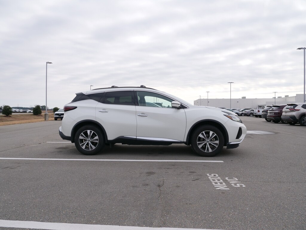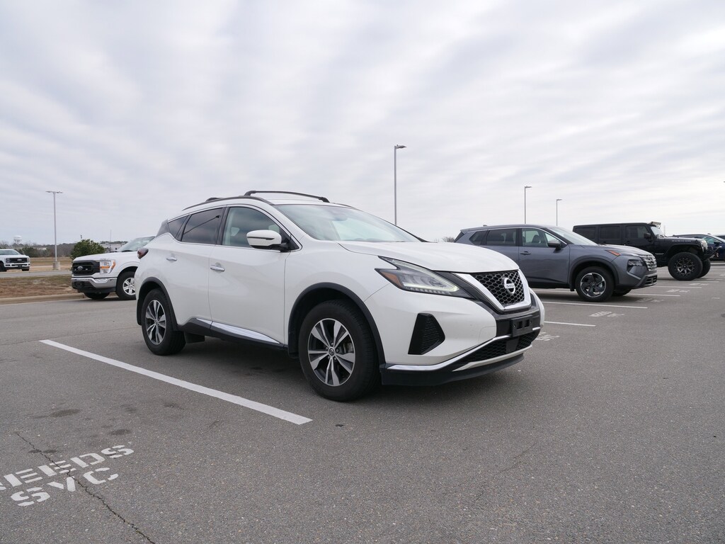 Pearl White Tricoat 2020 Nissan Murano SV 3.5L V6 DOHC 24V CVT with Xtronic FWD CVT with Xtronic, 4-Wheel Disc Brakes, 4.667 Axle Ratio, 6 Speakers, ABS brakes, Air Conditioning, Alloy wheels, AM/FM radio: SiriusXM, AM/FM/CD/MP3/WMA Audio System, Auto High-beam Headlights, Auto-dimming Rear-View mirror, Automatic temperature control, Blind Spot Warning, Brake assist, Bumpers: body-color, Carpeted Floor Mats & Carpeted Cargo Mat, CD player, Child-Seat-Sensing Airbag, Cloth Seat Trim, Delay-off headlights, Driver door bin, Driver vanity mirror, Dual front impact airbags, Dual front side impact airbags, Electronic Stability Control, Four wheel independent suspension, Front anti-roll bar, Front Bucket Seats, Front Center Armrest, Front dual zone A/C, Front reading lights, Fully automatic headlights, Garage door transmitter: HomeLink, Heated door mirrors, Illuminated entry, Knee airbag, Leather Shift Knob, Low tire pressure warning, NissanConnect featuring Apple CarPlay and Android Auto, Occupant sensing airbag, Outside temperature display, Overhead airbag, Overhead console, Panic alarm, Passenger door bin, Passenger vanity mirror, Power door mirrors, Power driver seat, Power passenger seat, Power steering, Power windows, Radio data system, Rear anti-roll bar, Rear Parking Sensors, Rear reading lights, Rear seat center armrest, Rear side impact airbag, Rear window defroster, Rear window wiper, Remote keyless entry, Roof rack: rails only, Roof Rail Cross Bars, Security system, Speed control, Speed-sensing steering, Speed-Sensitive Wipers, Splash Guards, Split folding rear seat, Spoiler, Steering wheel mounted audio controls, Tachometer, Telescoping steering wheel, Tilt steering wheel, Traction control, Trip computer, Turn signal indicator mirrors, Variably intermittent wipers, and Wheels: 18 Machined Aluminum-Alloy.