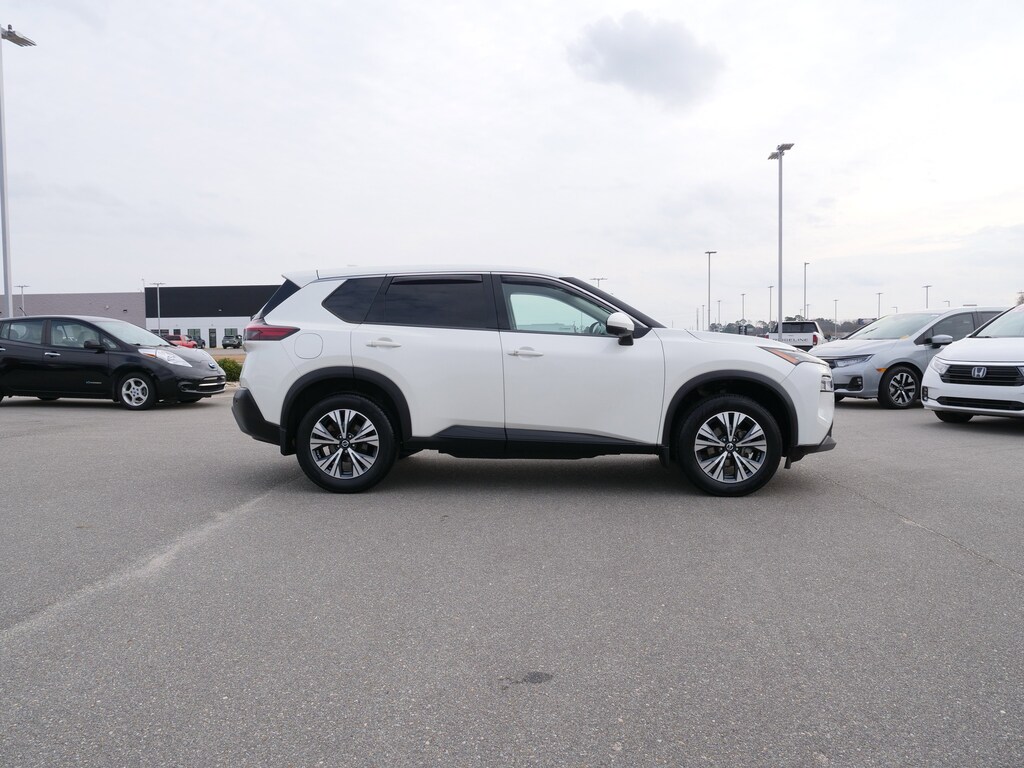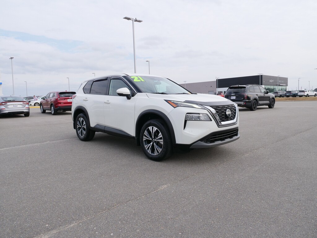 Recent Arrival! Pearl White Tricoat 2021 Nissan Rogue SV 2.5L I4 DOHC 16V CVT with Xtronic FWD 18 Aluminum Alloy Wheels, 4-Wheel Disc Brakes, 5.604 Axle Ratio, 6 Speakers, ABS brakes, Air Conditioning, Alloy wheels, AM/FM Radio, AM/FM radio, Auto High-beam Headlights, Automatic temperature control, Black Splash Guards (Set of 4), Brake assist, Bumpers: body-color, Chrome Rear Bumper Protector, Cloth Seat Trim, Delay-off headlights, Driver door bin, Driver vanity mirror, Dual front impact airbags, Dual front side impact airbags, Electronic Stability Control, Emergency communication system: NissanConnect Services, First Aid Kit, Floor Mats w/1-Piece Cargo Area Protector, Four wheel independent suspension, Front anti-roll bar, Front Bucket Seats, Front Center Armrest, Front dual zone A/C, Front reading lights, Fully automatic headlights, Heated door mirrors, Illuminated entry, Knee airbag, Low tire pressure warning, NissanConnect featuring Apple CarPlay and Android Auto, Occupant sensing airbag, Outside temperature display, Overhead airbag, Overhead console, Panic alarm, Passenger door bin, Passenger vanity mirror, Power door mirrors, Power driver seat, Power steering, Power windows, Radio data system, Rear anti-roll bar, Rear Parking Sensors, Rear seat center armrest, Rear side impact airbag, Rear window defroster, Rear window wiper, Remote keyless entry, Security system, Speed control, Speed-Sensitive Wipers, Split folding rear seat, Spoiler, Steering wheel mounted audio controls, Tachometer, Telescoping steering wheel, Tilt steering wheel, Traction control, Trip computer, Turn signal indicator mirrors, and Variably intermittent wipers.
