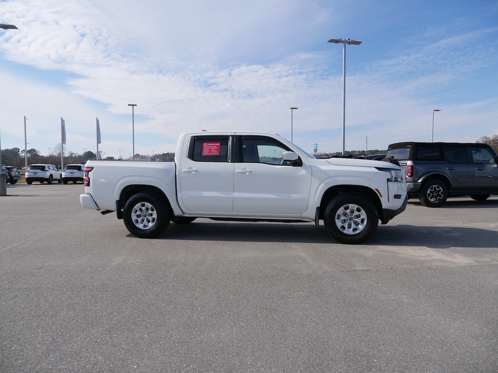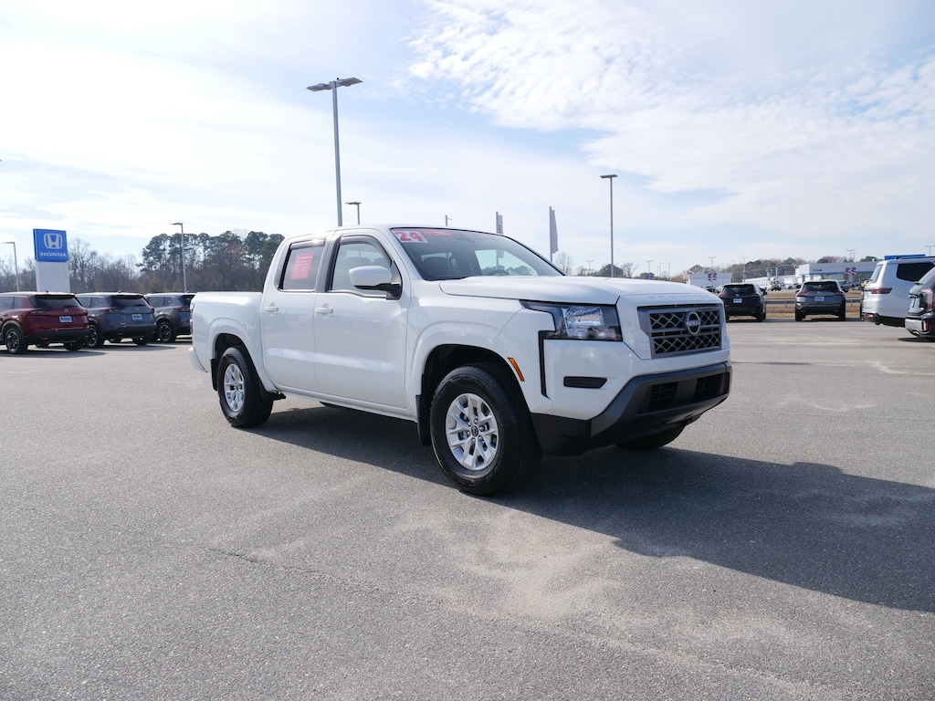 Glacier White 2024 Nissan Frontier SV 3.8L DI DOHC 24V V6 9-Speed Automatic with Overdrive RWD 16 Alloy Wheels, 3.692 Axle Ratio, 4-Wheel Disc Brakes, 6 Speakers, ABS brakes, Air Conditioning, Alloy wheels, AM/FM radio: SiriusXM, Anti-whiplash front head restraints, Apple CarPlay/Android Auto, Brake assist, Bumpers: body-color, Carpeted Floor Mats, Delay-off headlights, Driver door bin, Driver vanity mirror, Dual front impact airbags, Dual front side impact airbags, Electronic Stability Control, Fender Premium Audio System w/10 Speakers, Front anti-roll bar, Front Bucket Seats, Front Center Armrest, Front reading lights, Front wheel independent suspension, Fully automatic headlights, Illuminated entry, Knee airbag, Low tire pressure warning, Occupant sensing airbag, Overhead airbag, Panic alarm, Passenger door bin, Passenger vanity mirror, Power door mirrors, Power driver seat, Power steering, Power windows, Premium Cloth Seat Trim, Radio data system, Radio: SXM/AM/FM/AUX/USB Audio System, Rear anti-roll bar, Rear seat center armrest, Rear side impact airbag, Rear step bumper, Remote keyless entry, Security system, Speed control, Speed-sensing steering, Splash Guards, Split folding rear seat, Steering wheel mounted audio controls, Tachometer, Tilt steering wheel, Traction control, Trip computer, Variably intermittent wipers, and Voltmeter.