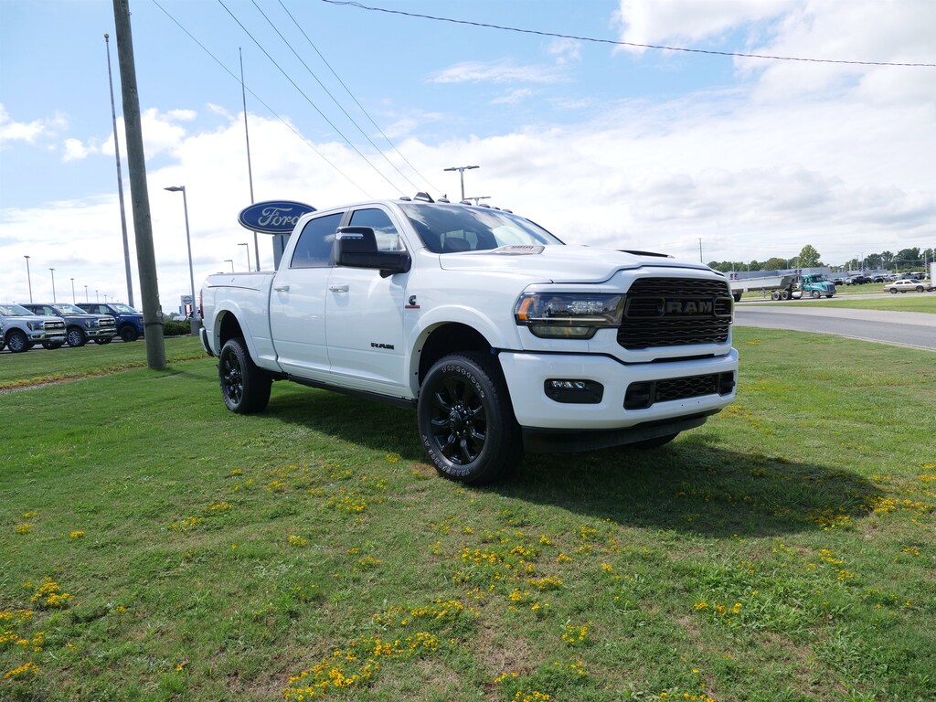 Bright White Clearcoat 2024 Ram 2500 Limited 4WD Cummins 6.7L I6 Turbodiesel 6-Speed Automatic Limited Level 1 Equipment Group (12 Touchscreen Display, 17 Speaker harman/kardon Premium Sound, 4 Adjustable Cargo Tie-Down Hooks, 4G LTE Wi-Fi Hot Spot, Adaptive Cruise Control w/Stop, Adaptive Steering System, Alexa Built-In, Apple CarPlay, Center Hub, Connected Travel & Traffic Services, Connectivity - US/Canada, CTR Stop Lamp w/Cargo View Camera, Digital Rearview Mirror, Disassociated Touchscreen Display, For Details, Visit DriveUconnect.com, For More Info, Call 800-643-2112, Full Speed Forward Collision Warning Plus, Global Telematics Box Module (TBM), Google Android Auto, GPS Antenna Input, GPS Navigation, HD Radio, Integrated Voice Command w/Bluetooth, Lane Keep Assist, LED Bed Lighting, MOPAR Spray In Bedliner, Off-Road Information Pages, Power Deployable Running Boards, Radio: Uconnect 5 Nav w/12.0 Display, RamBox Cargo Management System, Ramcharger Wireless Charging Pad, Selectable Tire Fill Alert, SiriusXM Radio Service, SiriusXM w/360L, Surround View Camera System, Trailer Reverse Guidance, Trailer Tow Pages, Truck Bed Cargo Divider, Vendor Painted Cargo Box, Vendor Painted Cargo Box Tracking, and Wheels: 20 x 8.0 Satin Carbon w/Chrome Inserts), Night Edition (Black Exterior Truck Badging, Black Grille Limited, Black Headlamp Bezels, Black Ram Head Tailgate Badge, Black Tail Lamp Bezels, Black Wheel Center Hub, Body Color Grille Surround, Sport Performance Hood, and Wheels: 20 x 8.0 Cast Aluminum Black), Off Road Package (Front Performance Tuned Shock Absorbers, Hill Descent Control, and Rear Performance Tuned Shock Absorbers), Quick Order Package 2HM Limited, Tow Technology Plus Group (Digital 3.0 Rear View Auto Dimming Mirror and Trailer Reverse Steering Control), 10 Speakers, 220 Amp Alternator, 3.73 Axle Ratio, 4-Wheel Disc Brakes, ABS brakes, Active Noise Control System, Adjustable pedals, Air Conditioning, Alloy wheels, AM/FM radio: SiriusXM with 360L, Anti-Spin Differential Rear Axle, Apple CarPlay/Android Auto, Audio memory, Auto High-beam Headlights, Auto-dimming door mirrors, Auto-dimming Rear-View mirror, Automatic temperature control, Auxiliary Switches Prep, Bodyside moldings, Brake assist, Bumpers: body-color, Clearance Lamps, Compass, Delay-off headlights, Driver door bin, Driver vanity mirror, Dual front impact airbags, Dual front side impact airbags, Electronic Stability Control, Electronically Controlled Throttle, Front anti-roll bar, Front Bucket Seats, Front Center Armrest w/Storage, Front dual zone A/C, Front fog lights, Front reading lights, Fully automatic headlights, Garage door transmitter, Genuine wood console insert, Genuine wood dashboard insert, Genuine wood door panel insert, Heated door mirrors, Heated front seats, Heated rear seats, Heated steering wheel, Illuminated entry, Instrument Cluster Theme 8, Leather steering wheel, Limited Leather Bucket Seats, Low tire pressure warning, Luxury Door Trim Panel (CTH), Memory seat, MOPAR Deployable Bed Step, MOPAR Front & Rear Rubber Floor Mats, Navigation System, Occupant sensing airbag, Outside temperature display, Overhead airbag, Overhead console, Panic alarm, ParkView Rear Back-Up Camera, Passenger door bin, Passenger vanity mirror, Pedal memory, Power door mirrors, Power driver seat, Power passenger seat, Power steering, Power Sunroof, Power windows, Radio data system, Radio: Uconnect 5 Nav w/8.4 Display, Rain sensing wipers, Rear anti-roll bar, Rear reading lights, Rear seat center armrest, Rear step bumper, Rear window defroster, Remote keyless entry, Security system, Speed control, Split folding rear seat, Steering wheel mounted audio controls, Tachometer, Tilt steering wheel, Tip Start, Traction control, Tri-Fold Tonneau Cover, Trip computer, Turn signal indicator mirrors, Upfitter Electronic Module (VSIM), Variably intermittent wipers, Ventilated front seats, Voltmeter, and Wheels: 20 x 8.0 Diamond Cut Face AluminuM.