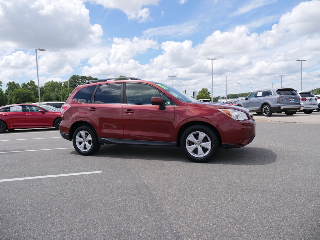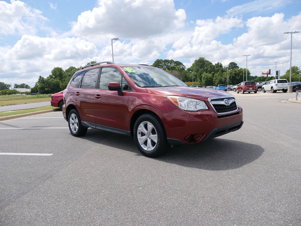 Venetian Red Pearl 2016 Subaru Forester 2.5i Premium AWD Lineartronic CVT 2.5L 4-Cylinder DOHC 16V VVT All-Weather Package & EyeSight (EyeSight System, Heated Exterior Mirrors, Heated Front Seats, Steering Responsive Fog Lights (SRF), and Windshield Wiper De-Icer), 17" Alloy Wheels, 3.70 Axle Ratio, 4-Wheel Disc Brakes, 6 Speakers, ABS brakes, Air Conditioning, All Weather Floor Mats, Alloy wheels, AM/FM radio: SiriusXM, Auto-Dimming Mirror w/Compass & HomeLink, Brake assist, Bumpers: body-color, Cargo Tray, CD player, Cloth Upholstery, Driver door bin, Driver vanity mirror, Dual front impact airbags, Dual front side impact airbags, Electronic Stability Control, Emergency communication system: STARLINK, Exterior Parking Camera Rear, Four wheel independent suspension, Front anti-roll bar, Front Bucket Seats, Front Center Armrest, Front reading lights, Illuminated entry, Knee airbag, Low tire pressure warning, Luggage Compartment Cover, Occupant sensing airbag, Outside temperature display, Overhead airbag, Overhead console, Panic alarm, Passenger door bin, Passenger vanity mirror, Power door mirrors, Power driver seat, Power moonroof, Power steering, Power windows, Radio data system, Radio: Subaru Starlink 7.0" Multimedia Plus System, Rear anti-roll bar, Rear Bumper Cover, Rear seat center armrest, Rear window defroster, Rear window wiper, Remote keyless entry, Roof rack: rails only, Seat Back Cargo Net, Security system, Speed control, Split folding rear seat, Steering wheel mounted audio controls, Tachometer, Telescoping steering wheel, Tilt steering wheel, Traction control, Trip computer, and Variably intermittent wipers.