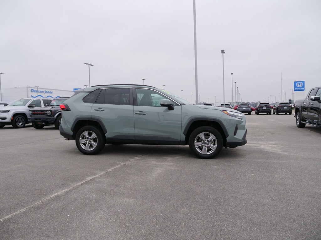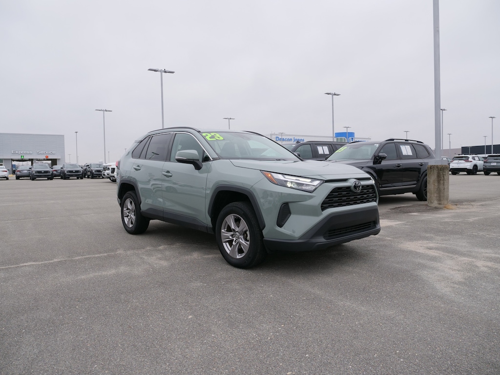Gray 2023 Toyota RAV4 XLE 2.5L 4-Cylinder DOHC Dual VVT-i 8-Speed Automatic FWD Black Cloth, 4-Wheel Disc Brakes, 6 Speakers, ABS brakes, Air Conditioning, Alloy wheels, AM/FM radio: SiriusXM, Auto High-beam Headlights, Automatic temperature control, Axle Ratio: 3.177, Brake assist, Bumpers: body-color, Delay-off headlights, Driver door bin, Driver vanity mirror, Dual front impact airbags, Dual front side impact airbags, Electronic Stability Control, Emergency communication system: Safety Connect (10-year trial), Exterior Parking Camera Rear, Fabric Seat Trim, Four wheel independent suspension, Front anti-roll bar, Front Bucket Seats, Front Center Armrest, Front dual zone A/C, Front reading lights, Fully automatic headlights, Heated door mirrors, Illuminated entry, Knee airbag, Low tire pressure warning, Occupant sensing airbag, Outside temperature display, Overhead airbag, Overhead console, Panic alarm, Passenger door bin, Passenger vanity mirror, Power door mirrors, Power driver seat, Power steering, Power windows, Radio data system, Radio: AM/FM/XM Audio System, Rear anti-roll bar, Rear seat center armrest, Rear window defroster, Rear window wiper, Remote keyless entry, Speed control, Speed-sensing steering, Split folding rear seat, Spoiler, Steering wheel mounted audio controls, Tachometer, Telescoping steering wheel, Tilt steering wheel, Traction control, Trip computer, Turn signal indicator mirrors, Variably intermittent wipers, and Wheels: 17 5-Spoke Silver Alloy.