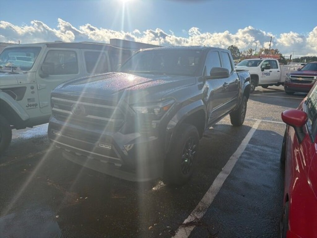 Gray 2024 Toyota Tacoma TRD Sport 2.4L 4-Cylinder 8-Speed Automatic RWD 3.583 Axle Ratio, 4-Wheel Disc Brakes, 6 Speakers, ABS brakes, Air Conditioning, Alloy wheels, AM/FM radio: SiriusXM, Anti-whiplash front head restraints, Apple CarPlay/Android Auto, Auto High-beam Headlights, Auto-dimming Rear-View mirror, Automatic temperature control, Brake assist, Bumpers: body-color, Driver door bin, Driver vanity mirror, Dual front impact airbags, Dual front side impact airbags, Electronic Stability Control, Emergency communication system: Safety Connect (1-year trial), Exterior Parking Camera Rear, Fabric Seat Trim (FE), Four wheel independent suspension, Front anti-roll bar, Front Bucket Seats, Front Center Armrest, Front fog lights, Front reading lights, Fully automatic headlights, Heated door mirrors, Illuminated entry, Knee airbag, Leather Shift Knob, Leather steering wheel, Low tire pressure warning, Occupant sensing airbag, Outside temperature display, Overhead airbag, Overhead console, Panic alarm, Passenger door bin, Passenger vanity mirror, Power door mirrors, Power steering, Power windows, Radio: 8 Toyota Audio Multimedia, Rear step bumper, Rear window defroster, Remote keyless entry, Security system, Speed control, Speed-sensing steering, Split folding rear seat, Steering wheel mounted audio controls, Tachometer, Telescoping steering wheel, Tilt steering wheel, Traction control, Trip computer, Turn signal indicator mirrors, Variably intermittent wipers, and Wheels: 18 TRD Sport Alloy.