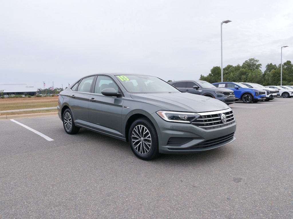 Gray 2019 Volkswagen Jetta SEL FWD 8-Speed Automatic with Tiptronic 1.4L TSI Sel Artificial Leather, 4-Wheel Disc Brakes, 9 Speakers, ABS brakes, Air Conditioning, Alloy wheels, AM/FM radio: SiriusXM, Auto High-beam Headlights, Auto-dimming Rear-View mirror, Automatic temperature control, Brake assist, Bumpers: body-color, Delay-off headlights, Driver door bin, Driver vanity mirror, Dual front impact airbags, Dual front side impact airbags, Electronic Stability Control, Emergency communication system: VW Car-Net services (capabilities require enrollment or subscription), Exterior Parking Camera Rear, Front anti-roll bar, Front Bucket Seats, Front Center Armrest, Front dual zone A/C, Front reading lights, Front wheel independent suspension, Fully automatic headlights, Heated door mirrors, Heated Front Comfort Seats, Heated front seats, Illuminated entry, Leather Shift Knob, Low tire pressure warning, Occupant sensing airbag, Outside temperature display, Overhead airbag, Overhead console, Panic alarm, Passenger door bin, Passenger vanity mirror, Perforated V-Tex Leatherette Seat Trim, Power door mirrors, Power moonroof, Power steering, Power windows, Radio data system, Radio: Composition Media w/8" Touchscreen, Rain sensing wipers, Rear anti-roll bar, Rear reading lights, Rear seat center armrest, Rear window defroster, Remote CD player, Remote keyless entry, Speed control, Speed-sensing steering, Split folding rear seat, Steering wheel mounted audio controls, Tachometer, Telescoping steering wheel, Tilt steering wheel, Traction control, Trip computer, Variably intermittent wipers, and Wheels: 16" Two-Tone Rama Black.