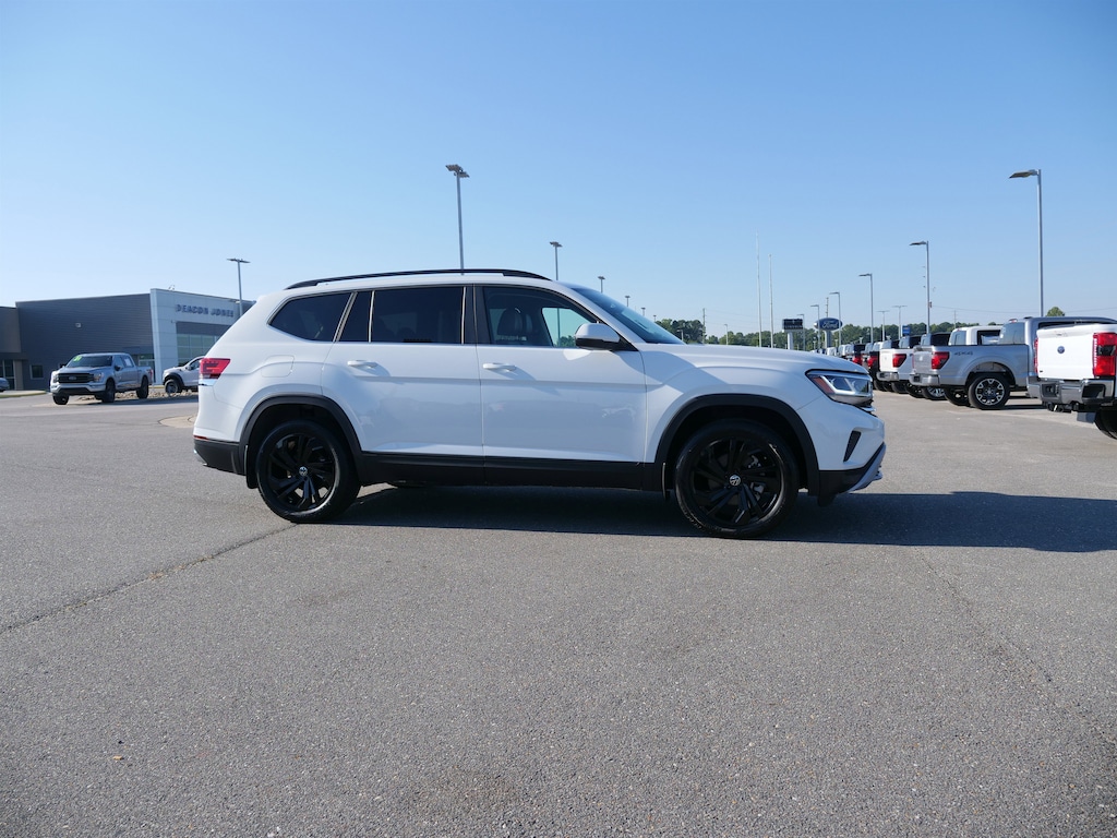 2023 Volkswagen Atlas 3.6L V6 SE w/Technology AWD 3.6L VR6 8-Speed Automatic with Tiptronic 3.60 Axle Ratio, 3rd row seats: split-bench, 4-Wheel Disc Brakes, 6 Speakers, ABS brakes, Air Conditioning, Alloy wheels, AM/FM radio: SiriusXM with 360L, Auto-dimming Rear-View mirror, Automatic temperature control, Brake assist, Bumpers: body-color, Compass, Delay-off headlights, Driver door bin, Driver vanity mirror, Dual front impact airbags, Dual front side impact airbags, Electronic Stability Control, Emergency communication system: VW Car-Net Safe & Secure 5-year, Exterior Parking Camera Rear, Four wheel independent suspension, Front anti-roll bar, Front Bucket Seats, Front Center Armrest, Front dual zone A/C, Front fog lights, Front reading lights, Fully automatic headlights, Heated Comfort Front Bucket Seats, Heated door mirrors, Heated front seats, Illuminated entry, Leather Shift Knob, Low tire pressure warning, Occupant sensing airbag, Outside temperature display, Overhead airbag, Overhead console, Panic alarm, Passenger door bin, Passenger vanity mirror, Perforated V-Tex Leatherette Seating Surfaces, Power door mirrors, Power driver seat, Power Liftgate, Power steering, Power windows, Radio data system, Radio: MIB3 Composition Media w/8 Touchscreen, Rain sensing wipers, Rear air conditioning, Rear anti-roll bar, Rear reading lights, Rear seat center armrest, Rear window defroster, Rear window wiper, Remote keyless entry, Security system, Speed control, Speed-sensing steering, Split folding rear seat, Spoiler, Standard Suspension, Steering wheel mounted audio controls, Tachometer, Telescoping steering wheel, Tilt steering wheel, Traction control, Trip computer, Turn signal indicator mirrors, Variably intermittent wipers, and Wheels: 20 x 8J 5-Spoke Silver Painted Alloy.